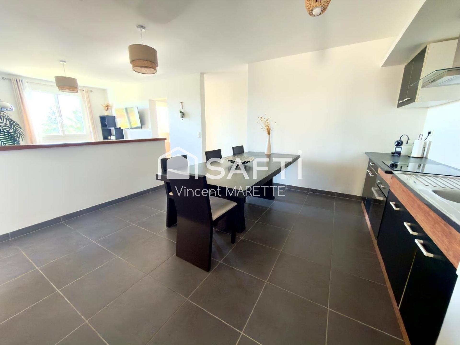Cet appartement de 85 m² se compose de 3 chambres, d'un salon/salle à manger offrant un espace chaleureux, d'une cuisine ouverte, équipée et aménagée, d'une salle de douche, et d'un WC séparé. Le tout est en excellent état général.