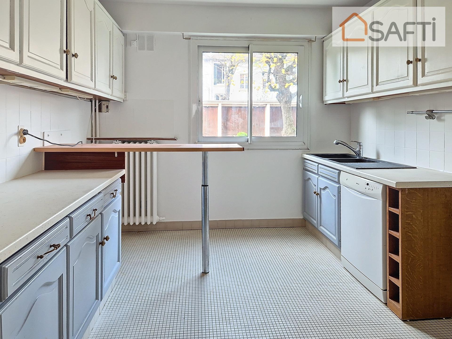 La Varenne, avenue du Commandant Rivière, en second plan, très au calme, dans une résidence sécurisée, à 5 min du RER A La Varenne-Chennevières, près des commerces et du complexe sportif des Jardins des Facultés, agréable T2 (possibilité T3) de 65 m² en rez-de jardin. Il offre une entrée avec placard et cellier, un séjour de 27 m² ouvrant sur un jardin privatif de 40 m², une cuisine de 11.7 m² (possibilité 2ème chambre et bascule de la cuisine dans le séjour), une chambre de 12 m², une salle de bain et des toilettes.