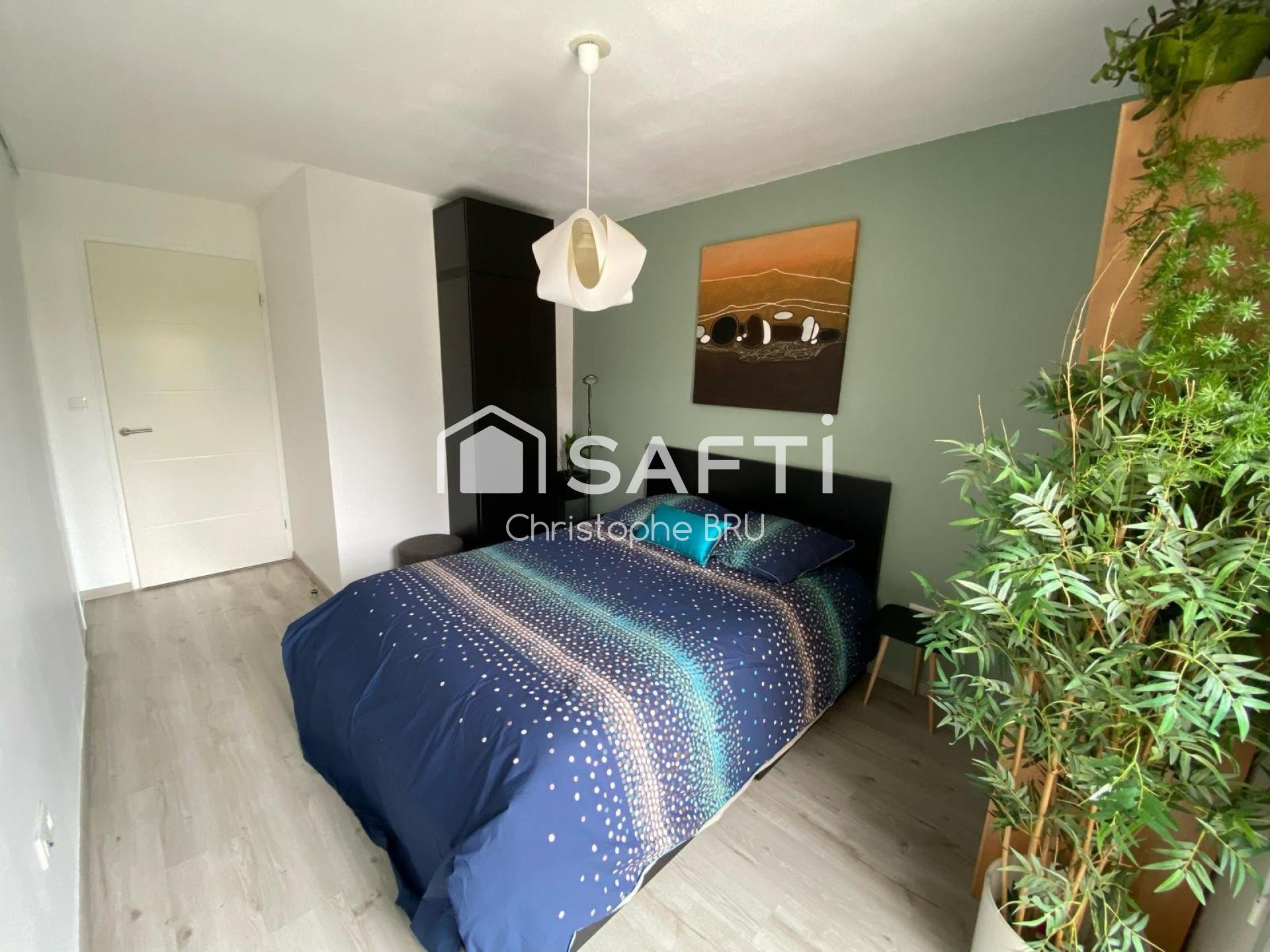 À l'intérieur, ce bien se compose de 5 pièces dont 4 chambres, permettant d'aménager des espaces de vie et de repos distincts. Le salon et le séjour offrent des volumes généreux et lumineux, créant une atmosphère chaleureuse. Un bien fonctionnel et bien agencé pour une qualité de vie optimale.