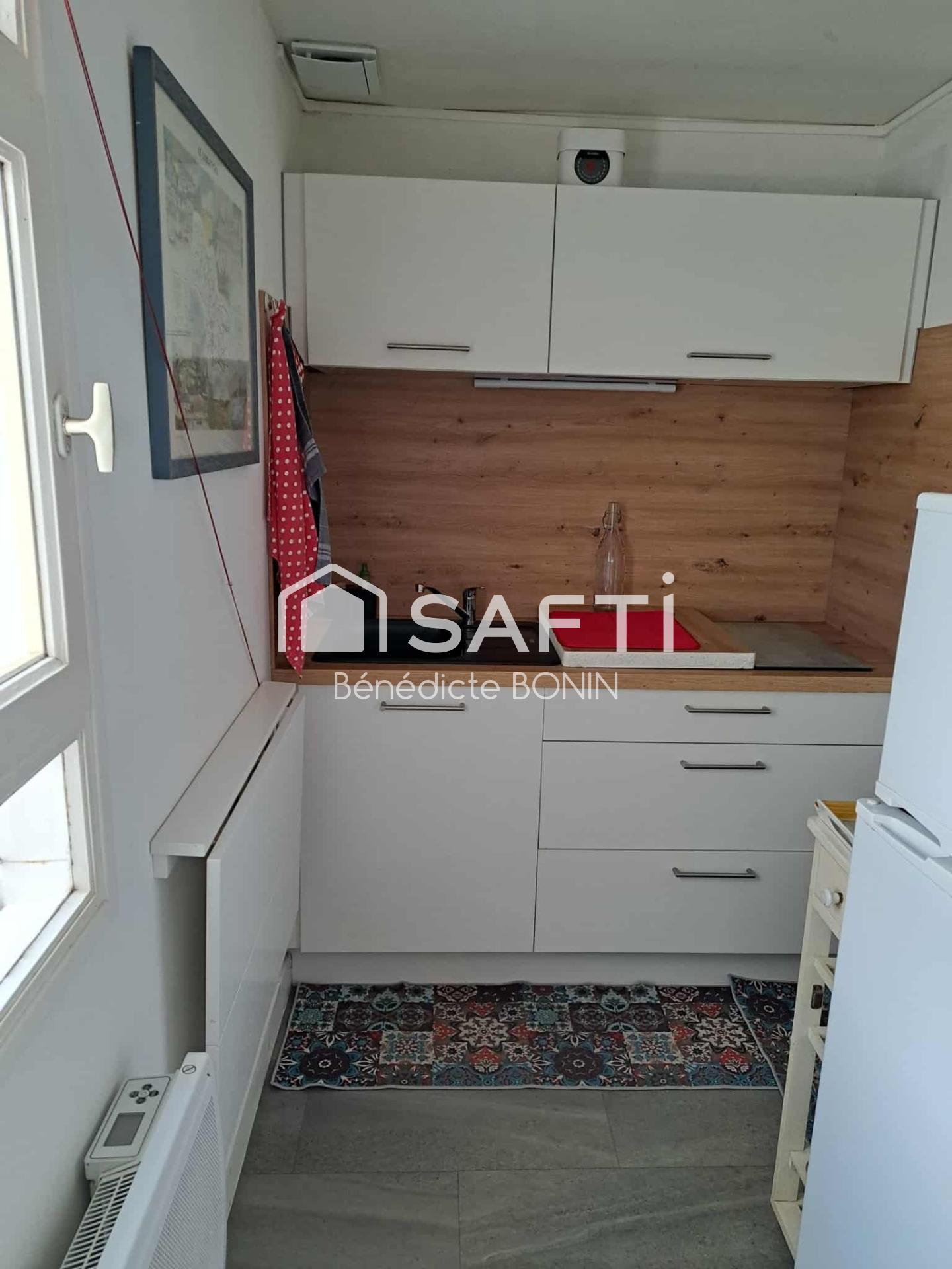 À l'intérieur, vous découvrirez un espace optimisé avec une pièce de vie comprenant un coin cuisine équipée et aménagée. La rénovation récente de la cuisine et de la salle d'eau avec douche, lavabos et WC intégrés, ainsi que la VMC neuve, offrent un confort moderne. Ce bien de 18.50 m², construit en 1976, est parfait pour une résidence secondaire ou un investissement locatif dans un cadre balnéaire prisé.