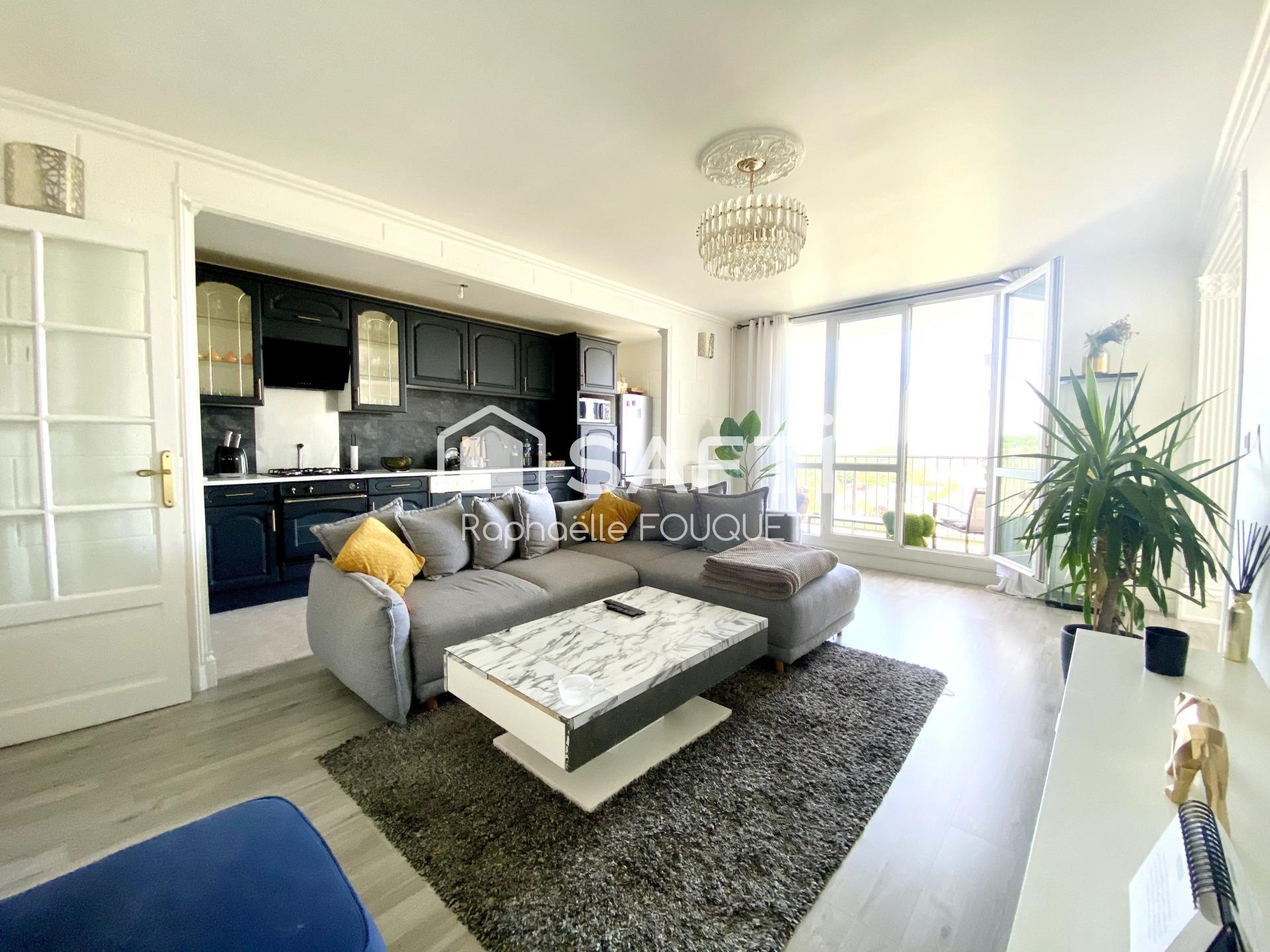 Ce bien de 74 m² se compose d'une entrée avec de grands placards, une cuisine aménagée et équipée ouverte sur une belle pièce de vie, de 2 chambres, une salle d'eau et des toilettes séparés. Une dernière pièce (ouverte sur le salon), vous laissera plusieurs possibilités (extension de la pièce de vie, bureau, 3ème chambre ...)