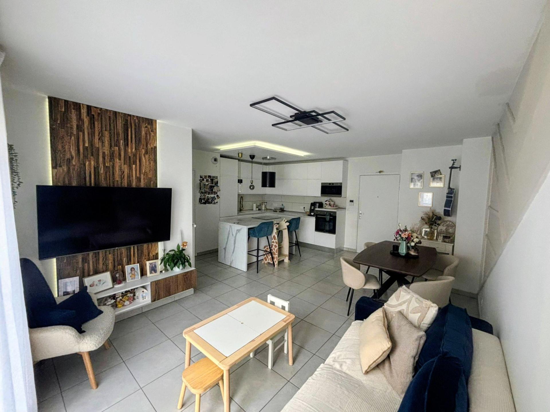 Vous recherchez un bel appartement proche toutes commodités (TRAM, bus, commerces, écoles, crèches, centres médicaux, zones sport et loisirs...), au calme, dans une résidence moderne, avec tout le confort et sans travaux ! Il vous attend ! Au 2e étage avec ascenseur, venez découvrir cet appartement moderne de 67.59 m² équipé de belles prestations fonctionnelles. L'entrée amène dans la pièce de vie lumineuse qui comprend le coin repas, l'espace salon et la cuisine élégante, bien équipée et aménagée avec goût. De larges baies vitrées donnent accès au balcon en L de 10 m², véritable espace de vie extérieur avec son store banne électrique et sans voisinage au-dessus. Un couloir, fermé par une porte de communication, conduit à l'espace nuit qui comprend : 1 dressing avec sa porte verrière, 1 WC séparé, 1 buanderie séparée et fonctionnelle, la salle de bain spacieuse avec baignoire + paroi, meuble double vasque et sèche-serviettes. Les 2 chambres avec leur plancher bois, dont 1 avec dressing aménagé, disposent chacune d'une porte-fenêtre donnant sur le balcon.