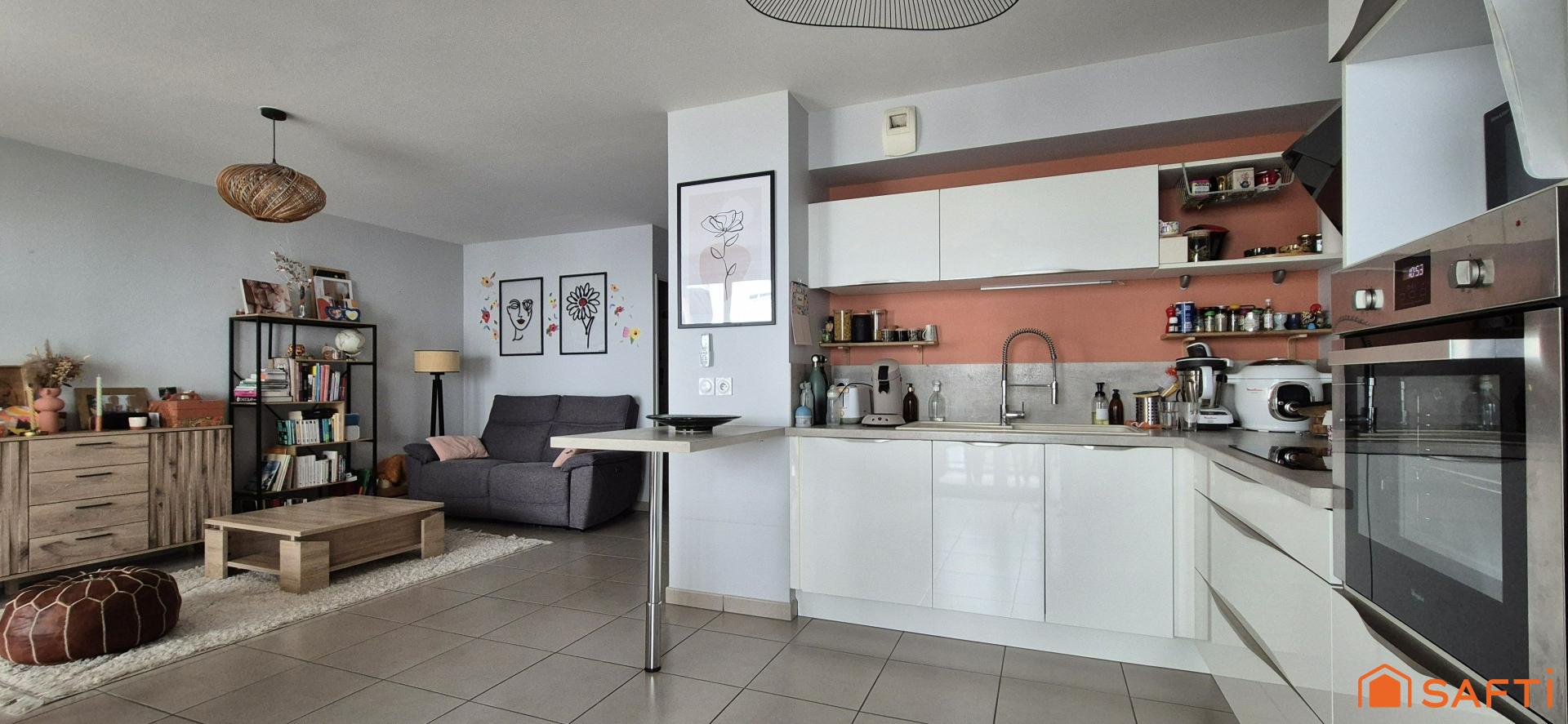 Au cœur de la commune dynamique de Saint-Priest, découvrez ce spacieux T3 de 73 m², situé au 1er étage d’une résidence récente (2016), sécurisée par digicode et raccordée à la fibre.