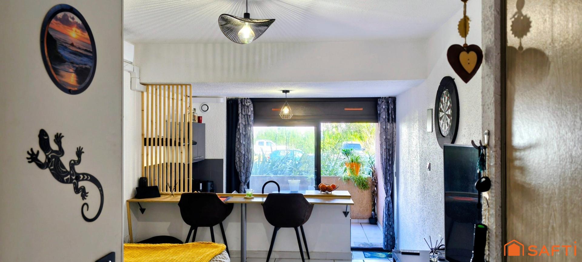 Découvrez ce charmant appartement de 24 m², entièrement rénové, meublé et équipé, offrant une agréable vue sur un espace vert. Un véritable cocon, idéal en résidence principale ou en pied?à?terre à deux pas de la mer.
