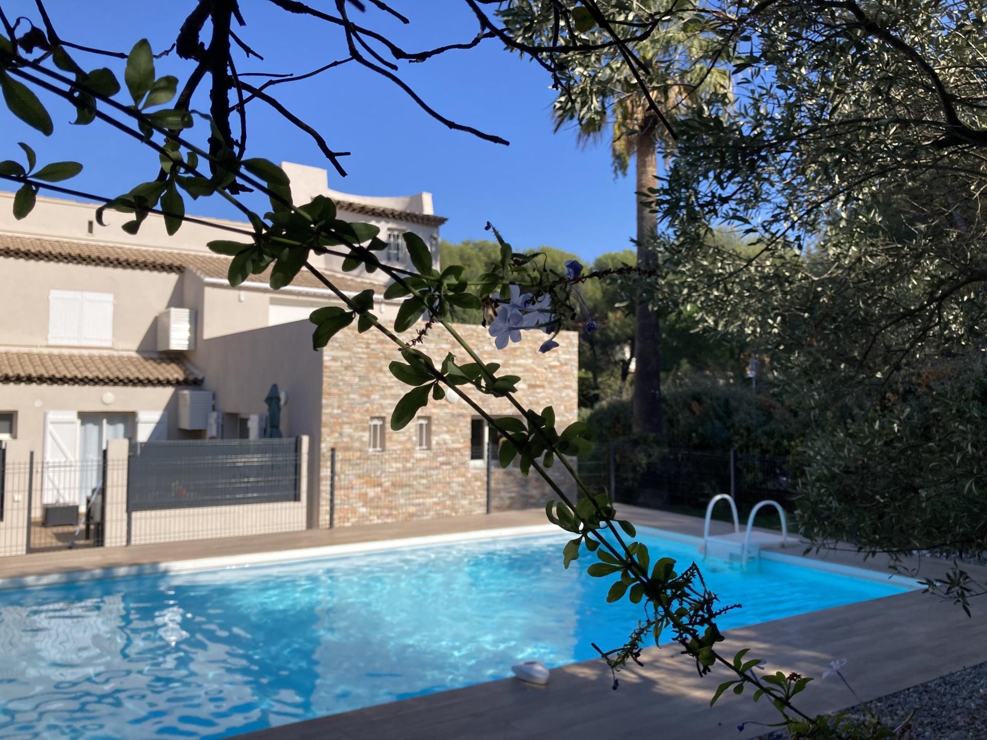 Petite copropriété de seulement 3 logements, sur une parcelle de 1 200 m² avec piscine 10 x 5 m réservée aux copropriétaires, dans un environnement calme, verdoyant et parfaitement entretenu.