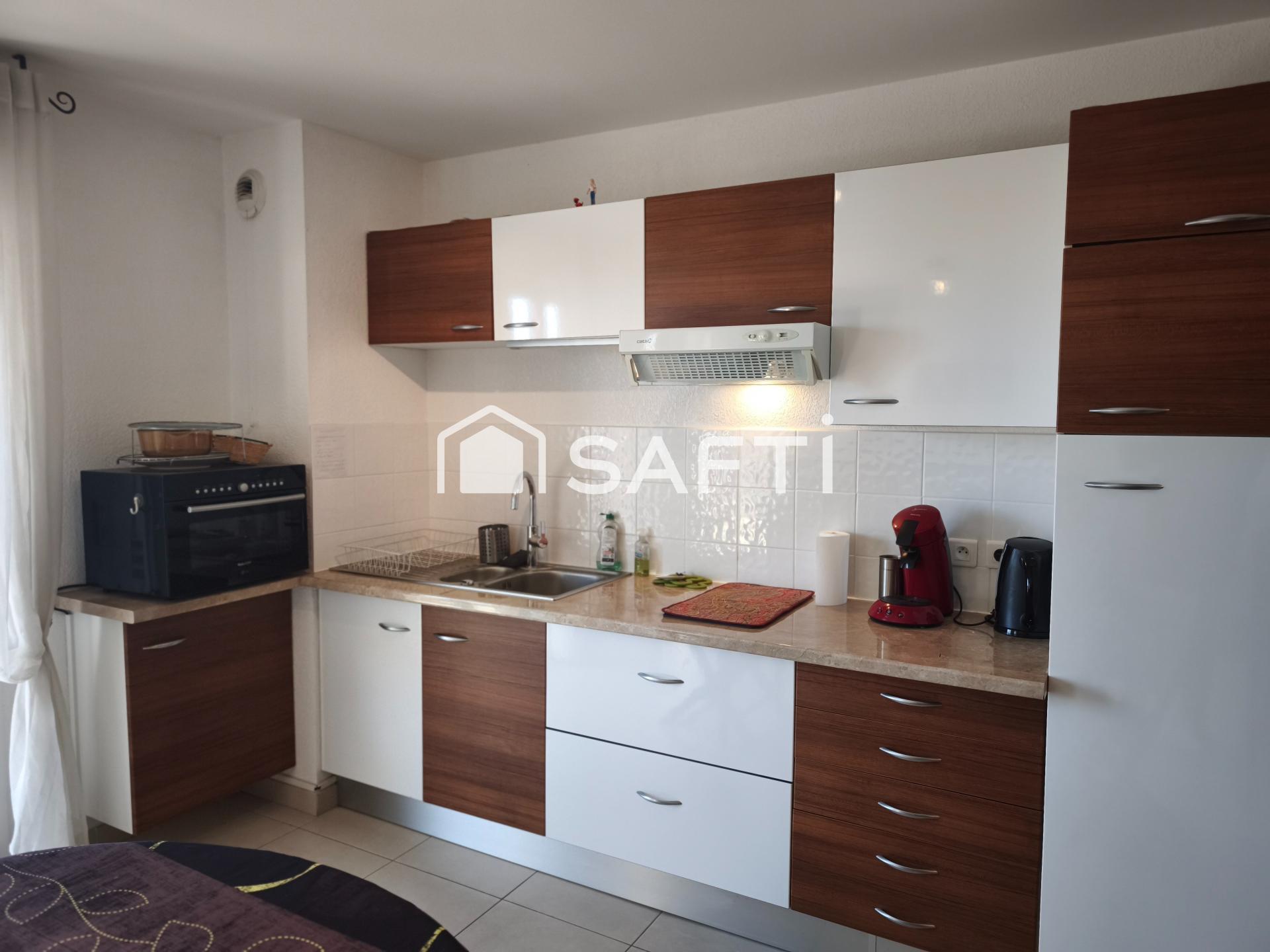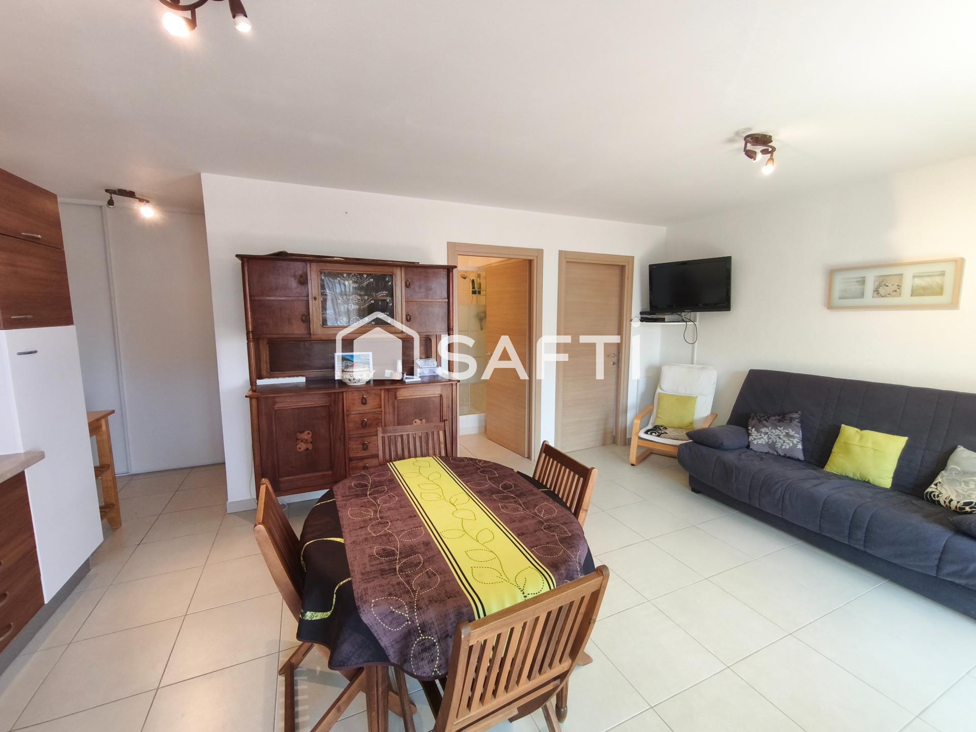 À l'intérieur, l'appartement récemment construit en 2008 présente un agencement fonctionnel avec une entrée donnant sur un salon cuisine lumineux, une salle d'eau avec wc et une chambre spacieuse dotée d'un placard mural. Vendu entièrement meublé avec le linge de maison, ce bien prêt à vivre séduit par son excellent état, permettant d'envisager des locations estivales avec un bon rendement. Une opportunité à saisir pour un confort de vie optimal en bord de mer.
