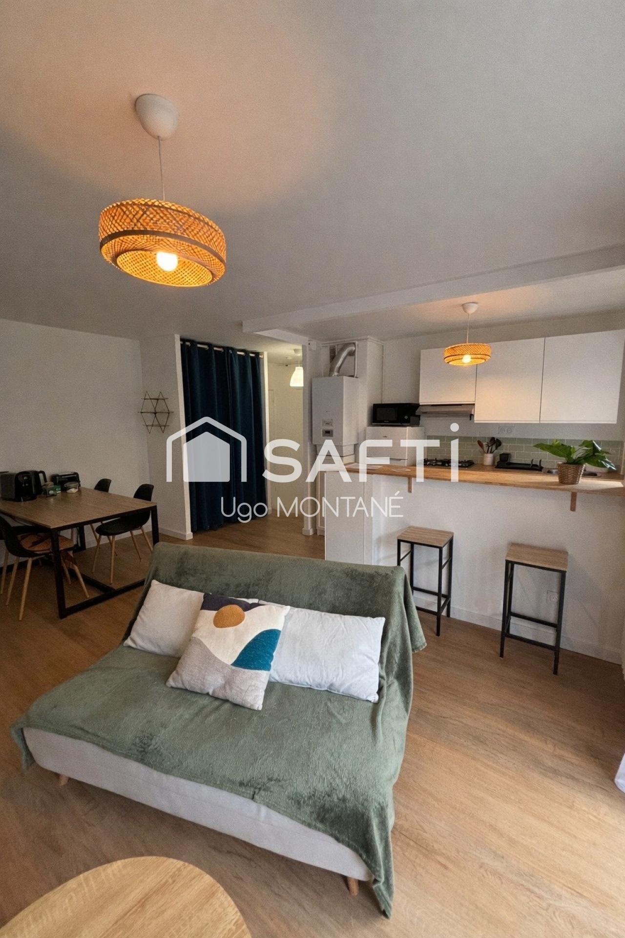 À l'intérieur, l'appartement se compose d'un lumineux séjour avec cuisine ouverte, d'une chambre séparée et d'une salle d'eau fonctionnelle. Propre et bien entretenu, il propose la possibilité de légers travaux d'aménagement pour le personnaliser selon vos goûts. Idéal pour un premier achat ou un investissement locatif dans un secteur très demandé, cet appartement offre confort et fonctionnalité.