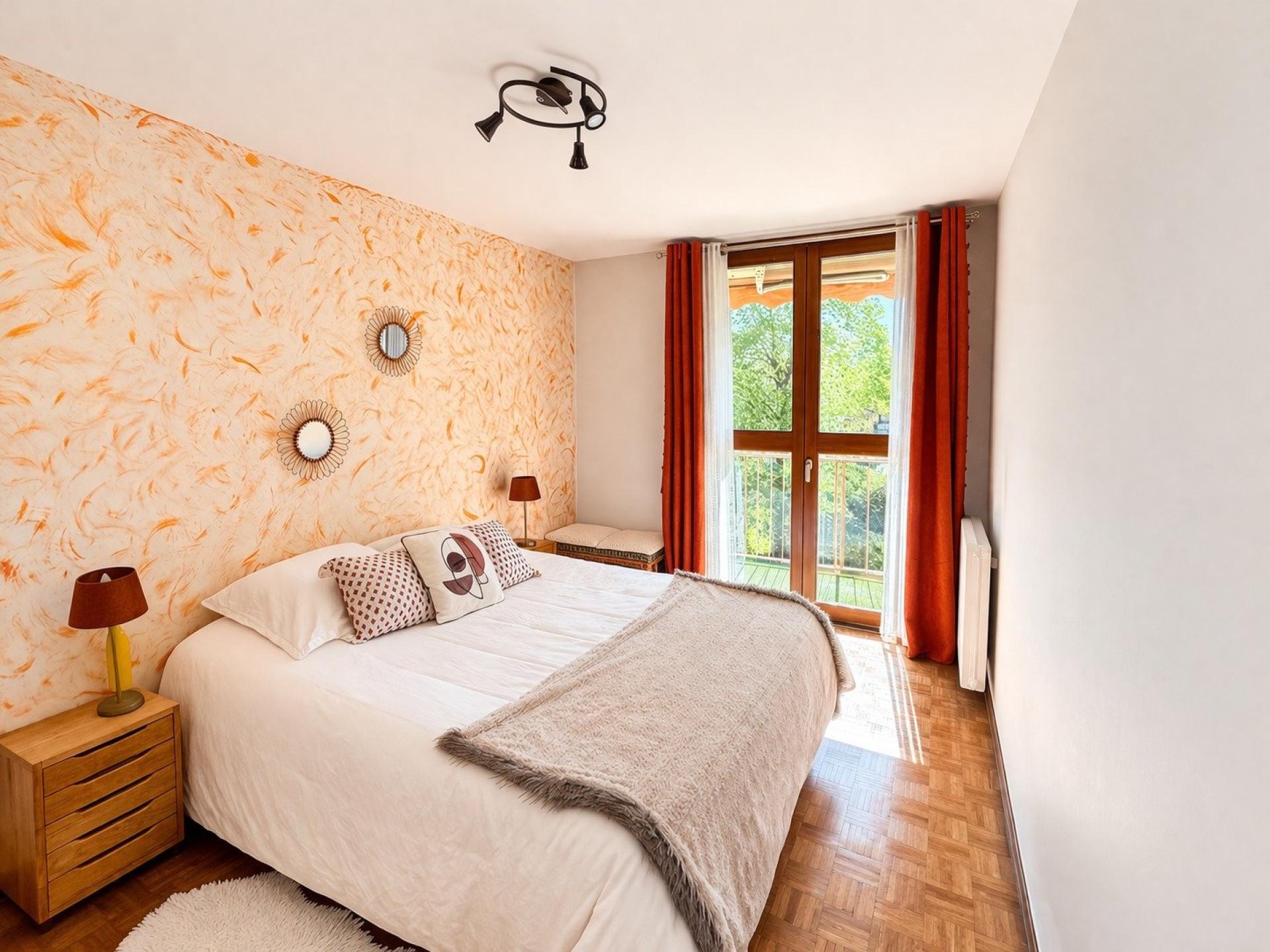 Appartement climatisé, avec parquet au sol et double exposition offrant un ensoleillement toute la journée.