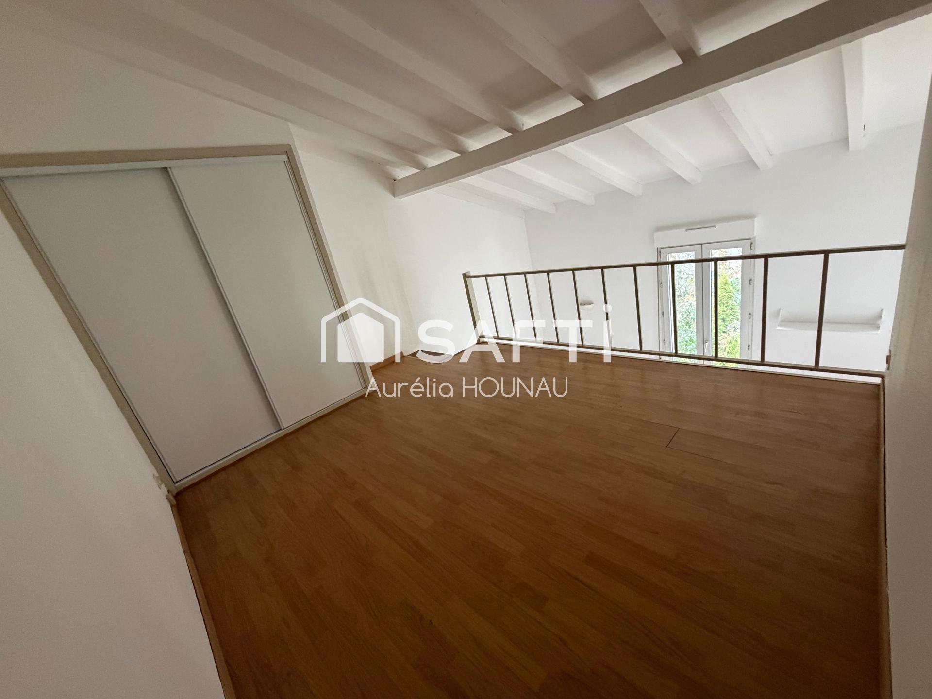 À l’étage, le coin nuit, spacieux et agréable, dispose d’un grand placard aménagé, offrant une capacité de rangement appréciable et un espace parfaitement optimisé. Il est complété par une salle de bain avec WC.
