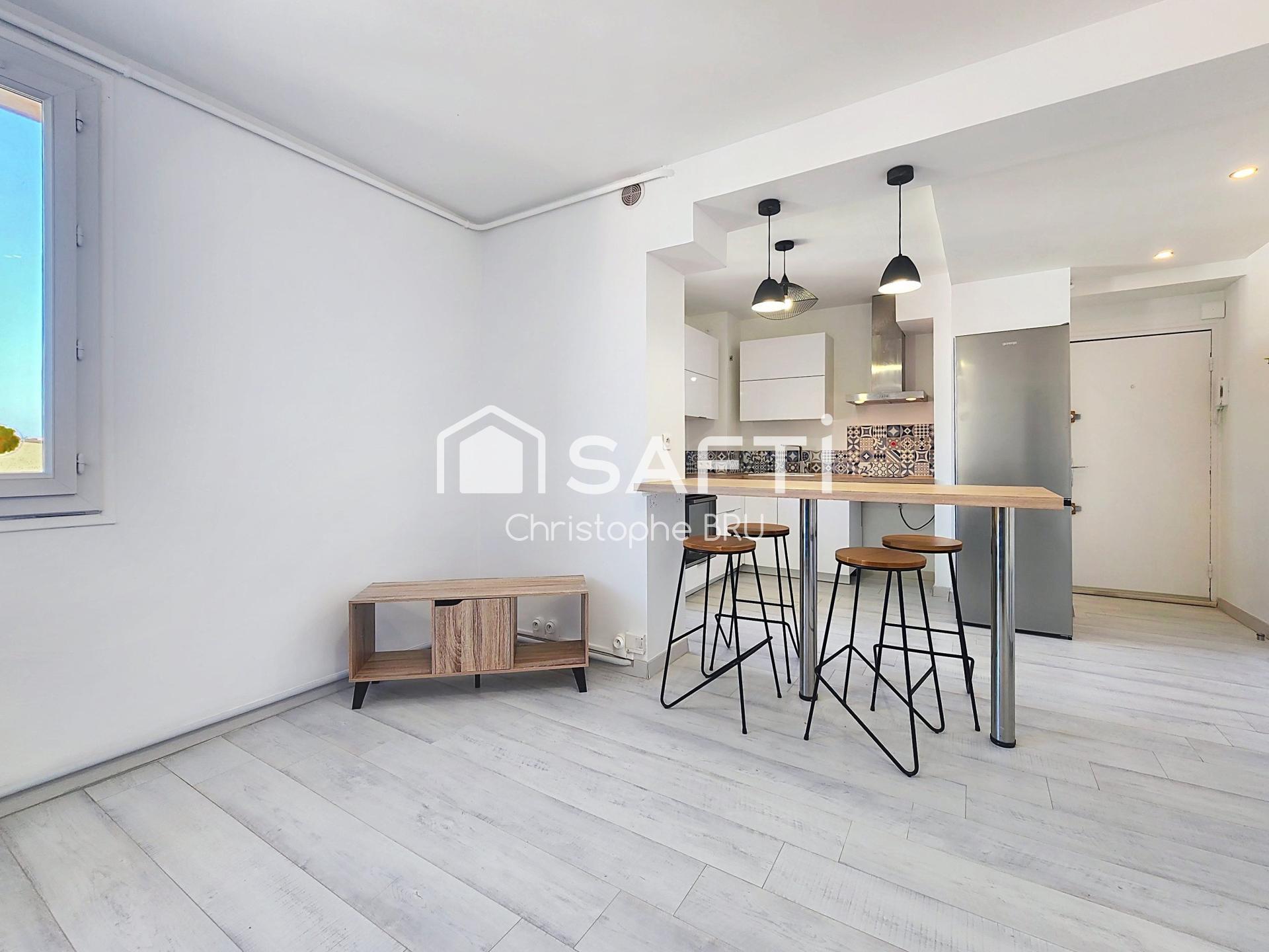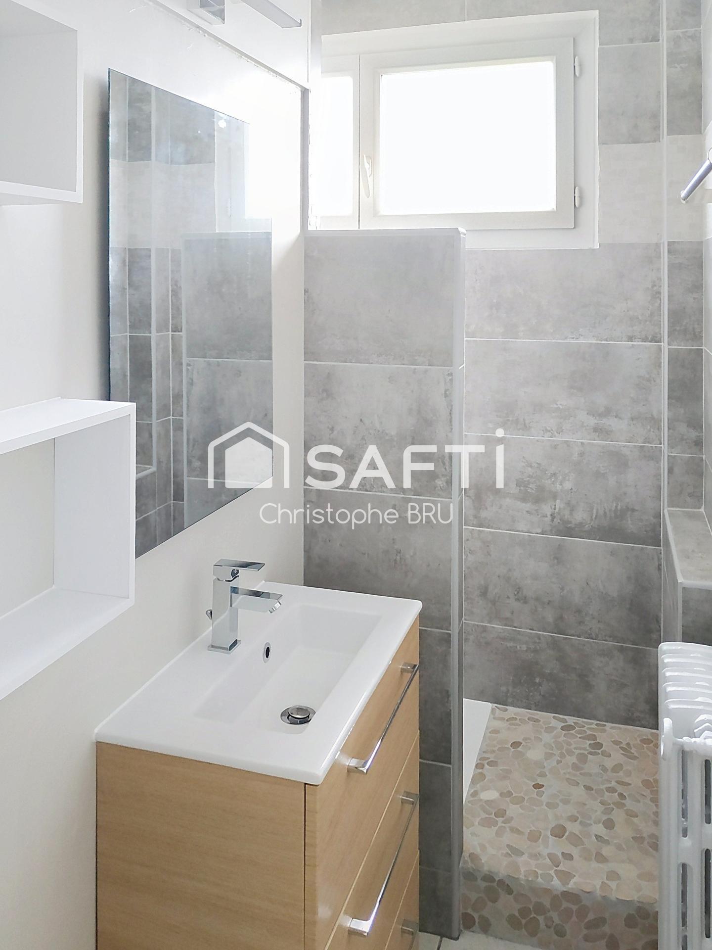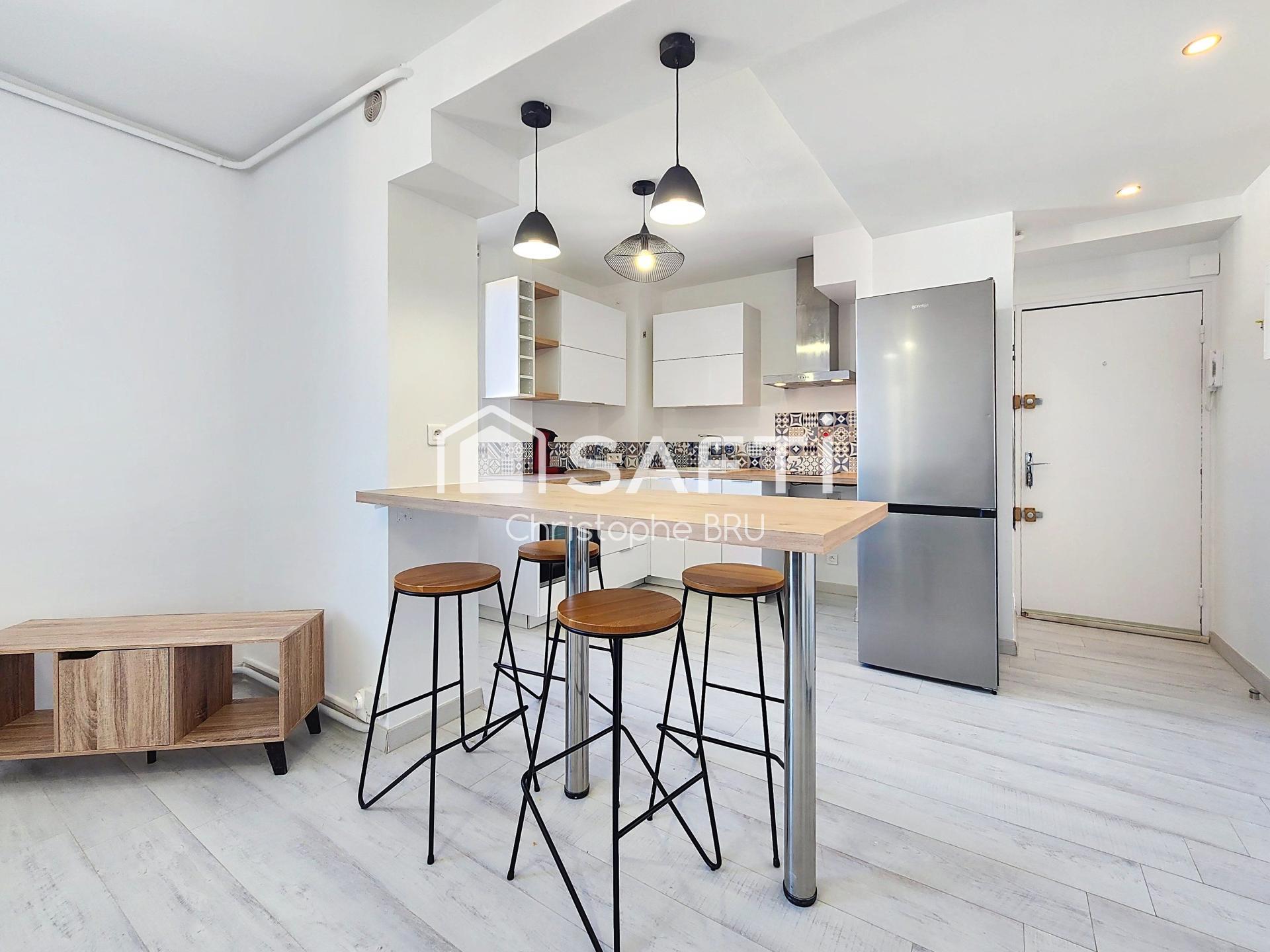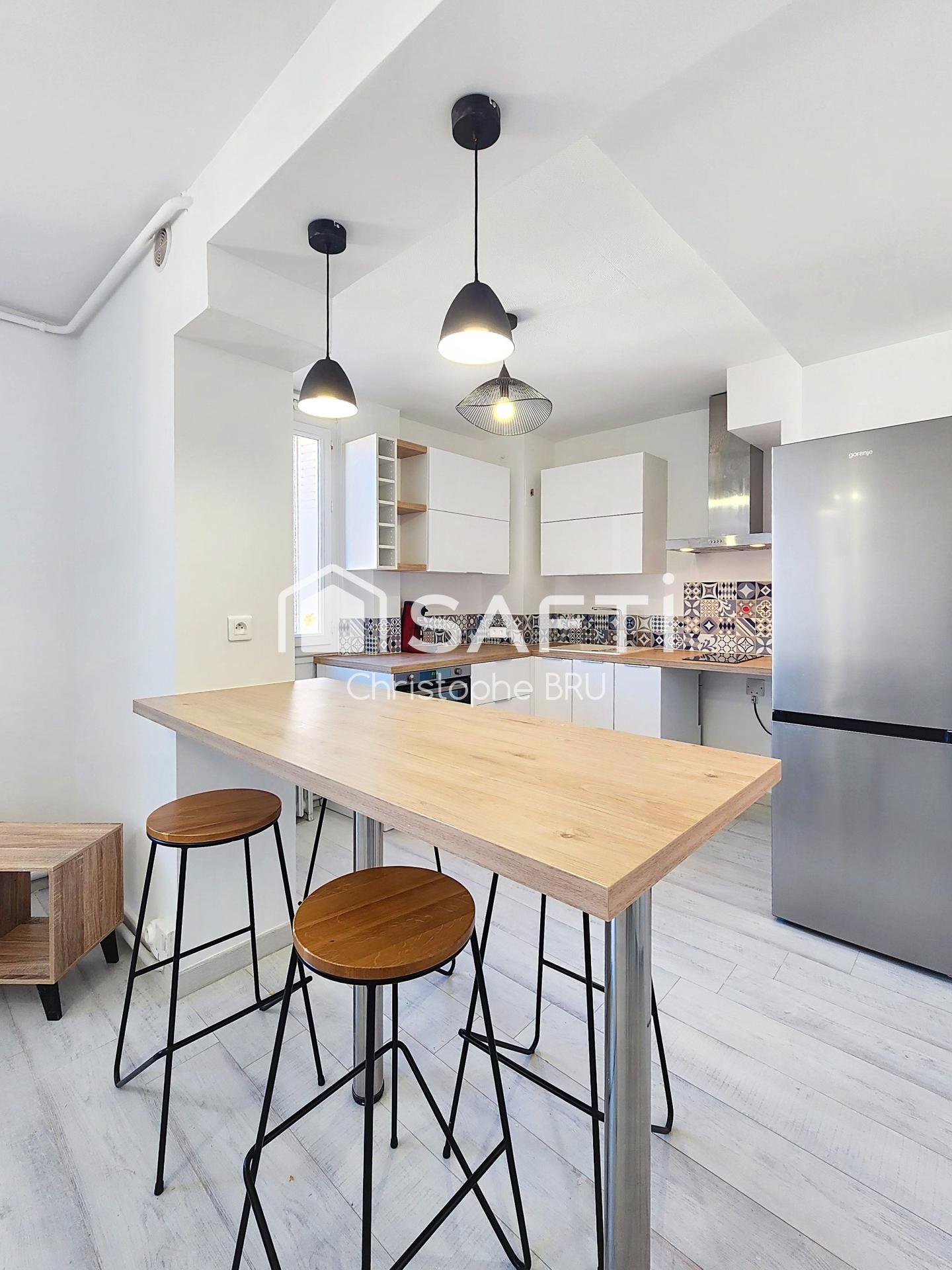 Entièrement refait à neuf avec des prestations modernes et soignées, ce bien offre un cadre de vie lumineux et parfaitement optimisé. Vous profiterez d’un agréable espace de vie avec cuisine ouverte contemporaine, idéal pour vos moments de convivialité.