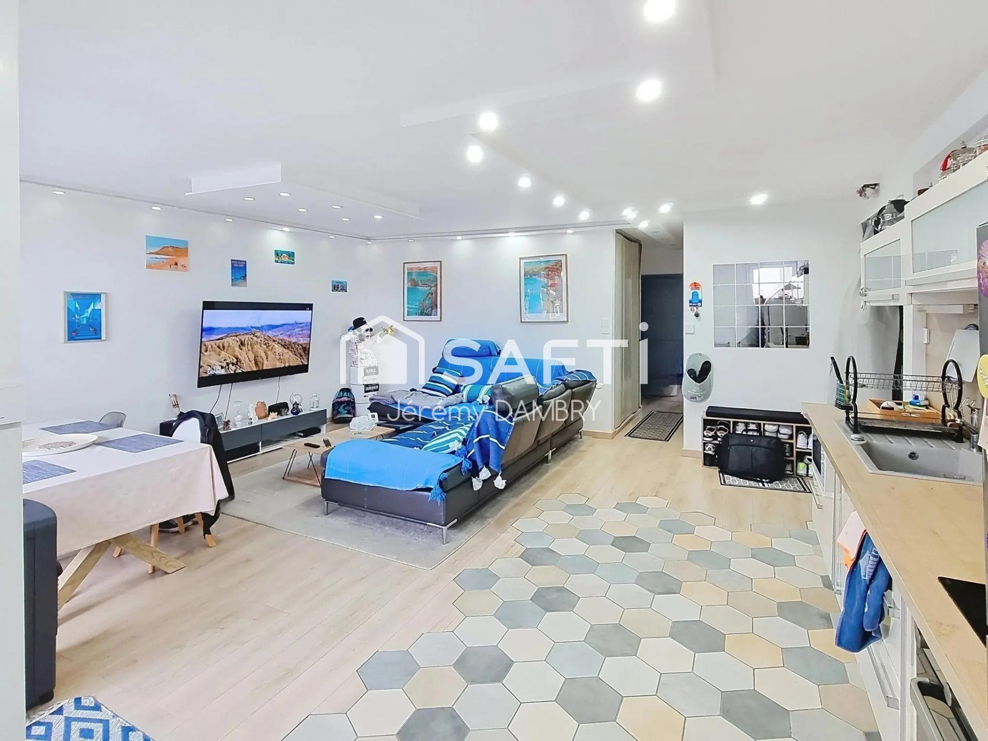 L'appartement de 74 m² se compose d'un séjour spacieux, d'une cuisine équipée, de 2 chambres confortables, d'une salle de bains et d'un WC séparé. L'intérieur est fonctionnel et bien agencé, offrant un espace de vie convivial. Le balcon ajoute une touche extérieure appréciable. Parfait pour un couple ou une petite famille, cet appartement T3 saura séduire par ses beaux volumes et sa configuration pratique.