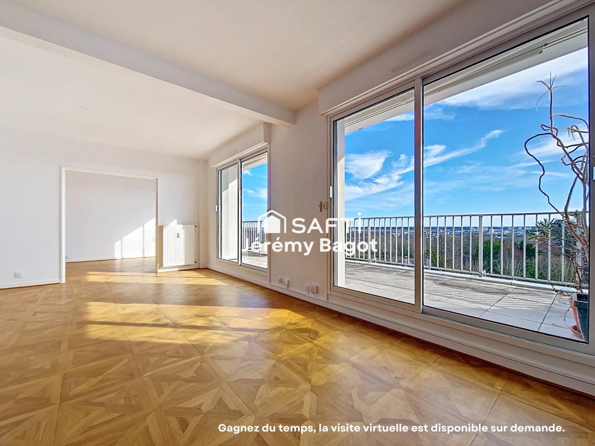 Ce bien se compose d'une entrée menant à un double séjour lumineux, ouvert sur une terrasse offrant une vue panoramique sur Tours. L'espace nuit comprend quatre chambres, deux toilettes et trois salles de bains. Parfaitement entretenu, cet appartement nécessite cependant une modernisation de la cuisine, d'une salle de bain ainsi que des huisseries.