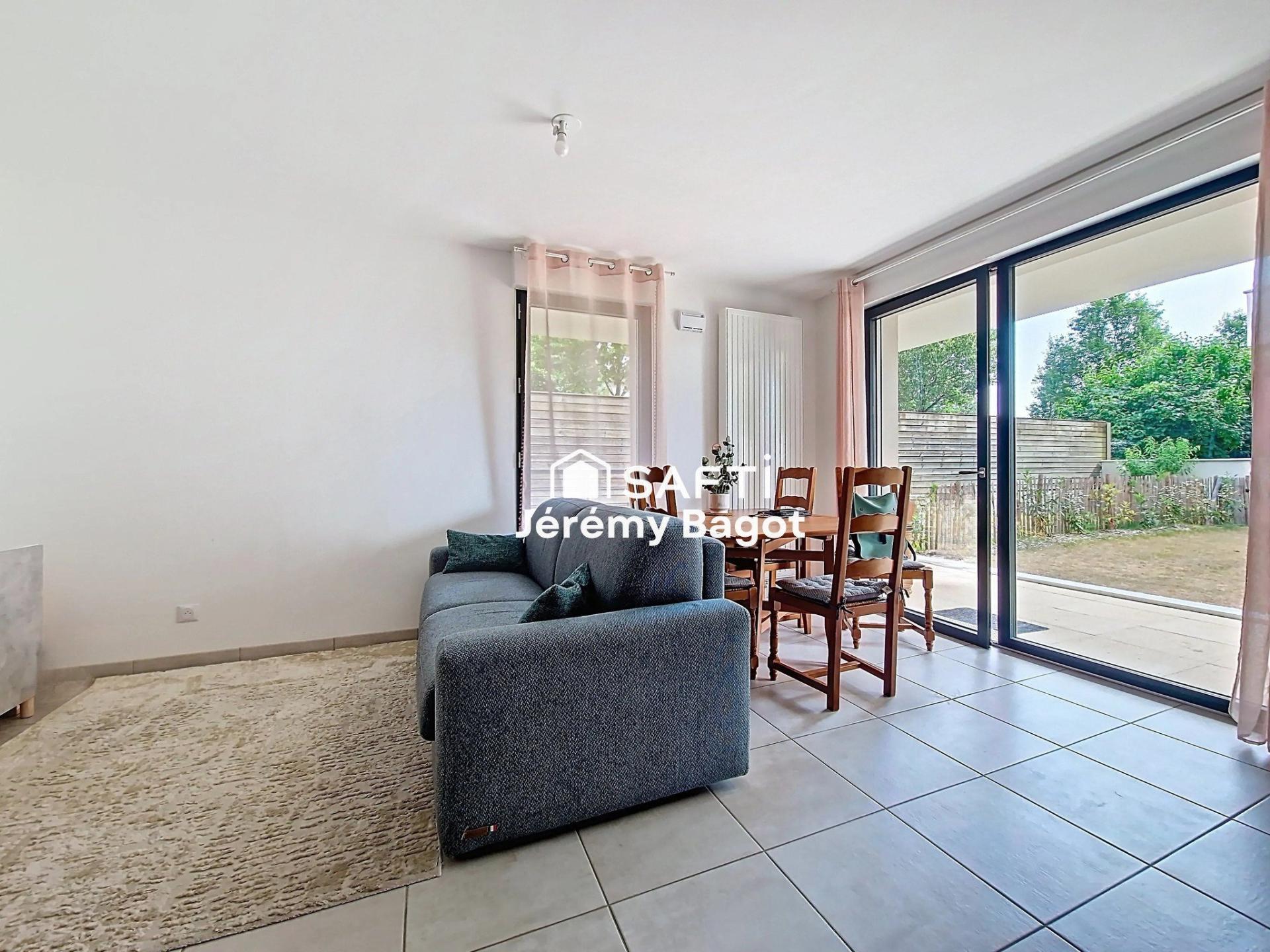 Je vous propose cet apparemment 3 pièces situé en rez-de-jardin d'une résidence récente. Coté pièce de vie l'appartement vous propose un grand séjour avec cuisine ouverte, aménagée et équipée de 30m2 qui donne directement sur une terrasse couverte puis sur un jardin de plus de 70m2. Coté nuit l’appartement dispose de 2 chambres, d'une salle de bains avec douche et d'un WC indépendant. L'appartement est vendu avec une place de parking facilement accessible, en sous-sol.