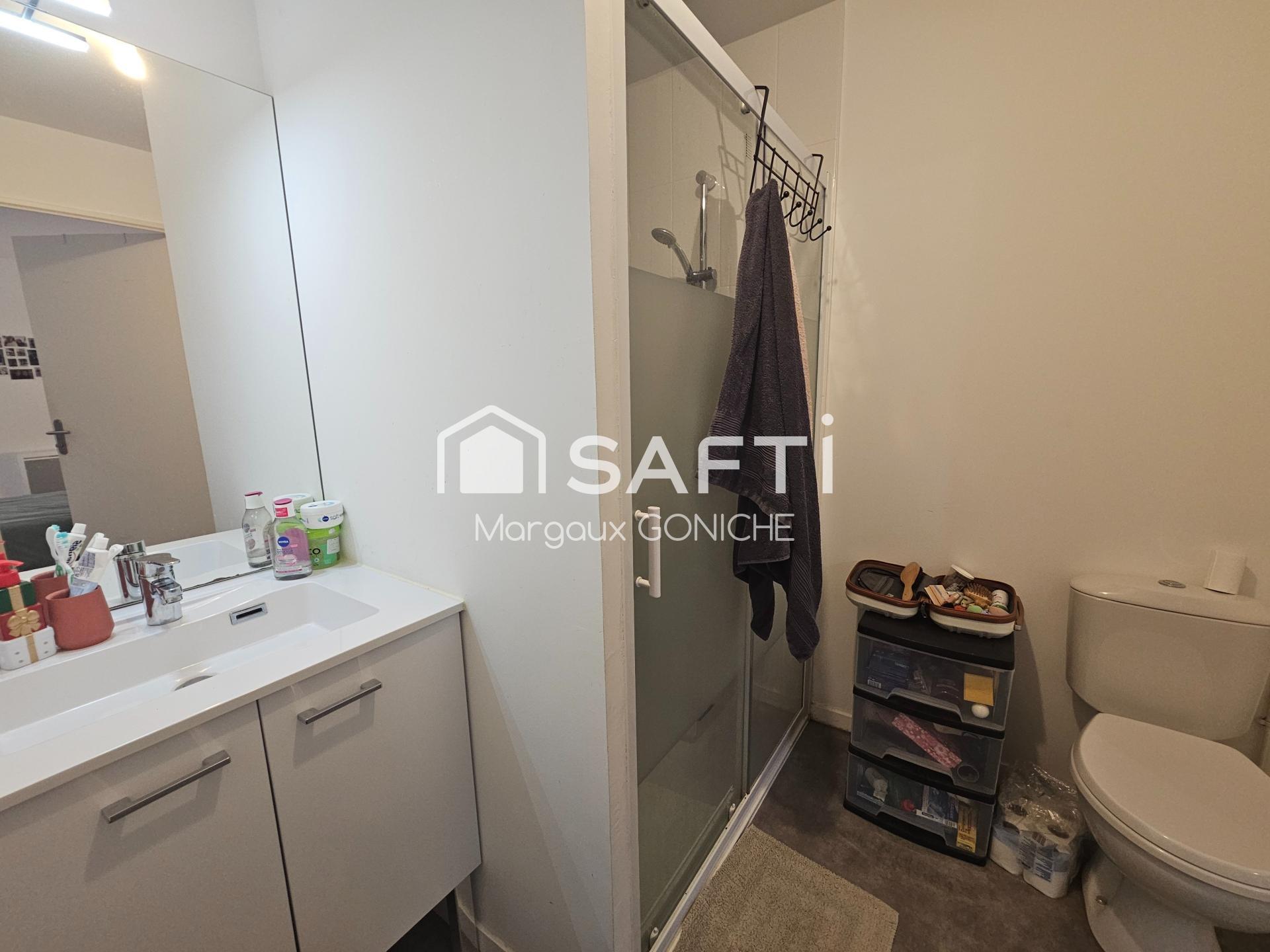 Une salle d'eau complète le confort de ce studio avec des WC et une douche.