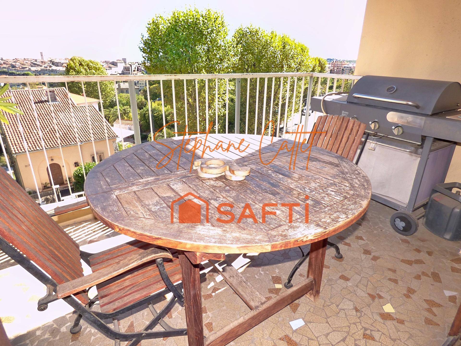 Proche commodités et écoles, en étage élevé, traversant et d'angle, 4P d'environ 98 m² avec beau séjour donnant sur terrasse profonde de 2 m exposée plein sud, sans vis-à-vis, avec aperçu mer et vue dégagée sur la ville de Vence et ses remparts. Cuisine indépendante équipée avec cellier, 3 chambres dont une d'environ 13 m² avec sa terrasse, salle de bains avec fenestron et wc indépendant. Vendu avec un garage et une cave. Appelez-moi vite pour une visite !