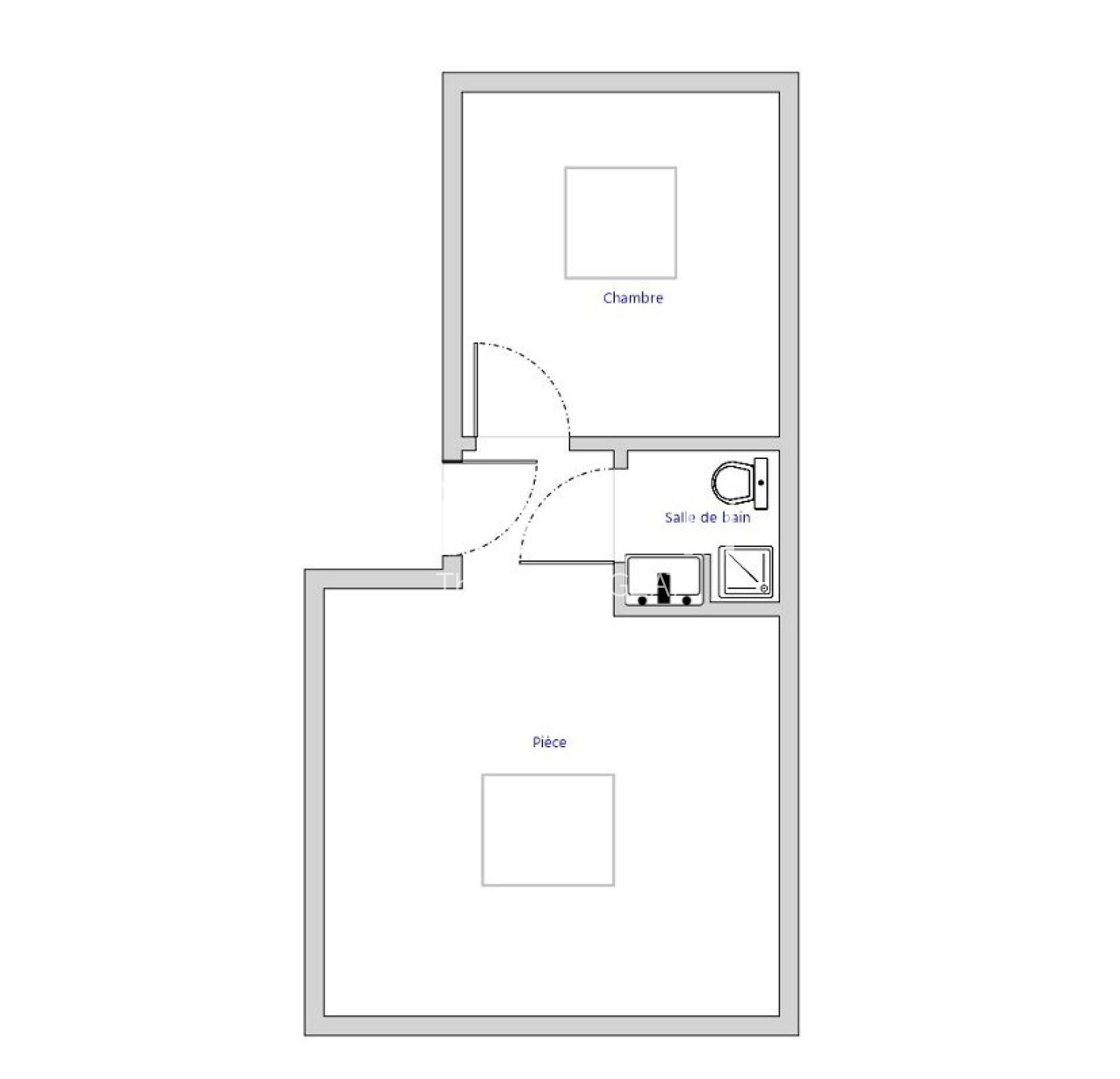 Le bien se compose d'une pièce de vie lumineuse intégrant un salon-séjour et un coin cuisine, d'une chambre indépendante ainsi que d'une salle d’eau avec douche et WC.