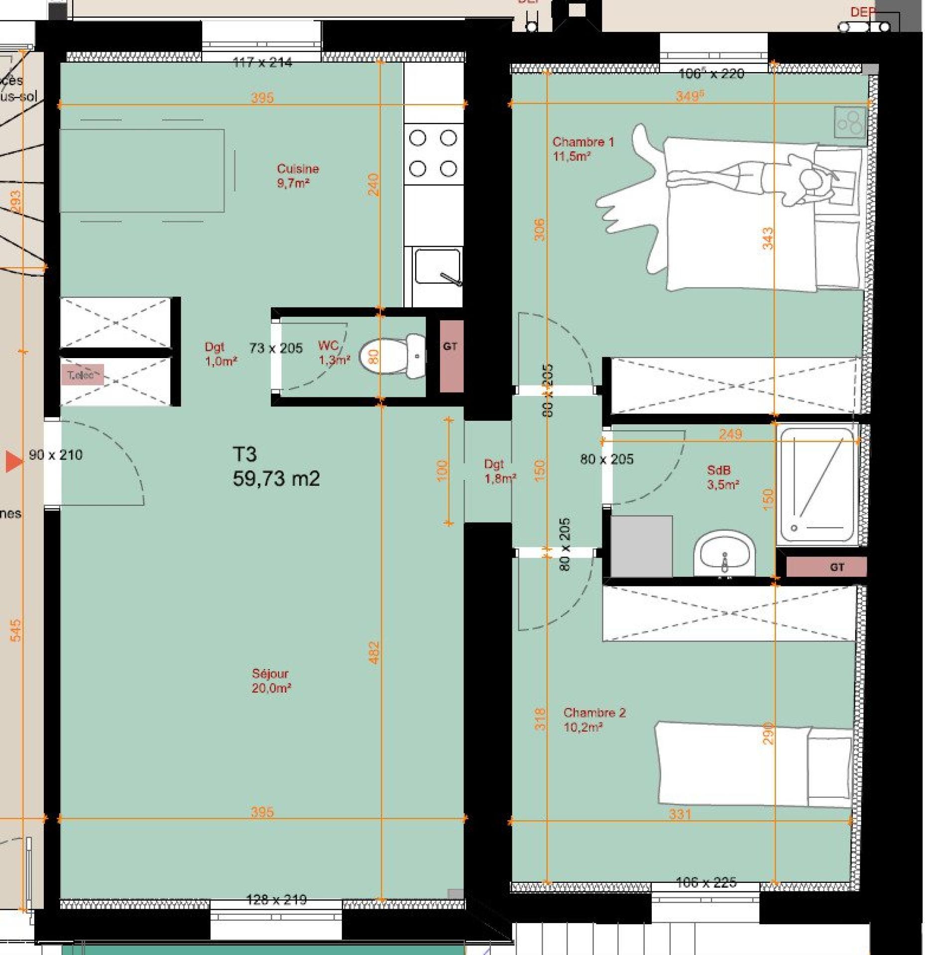 - Plomberie avec attentes pour WC, salle d’eau et cuisine