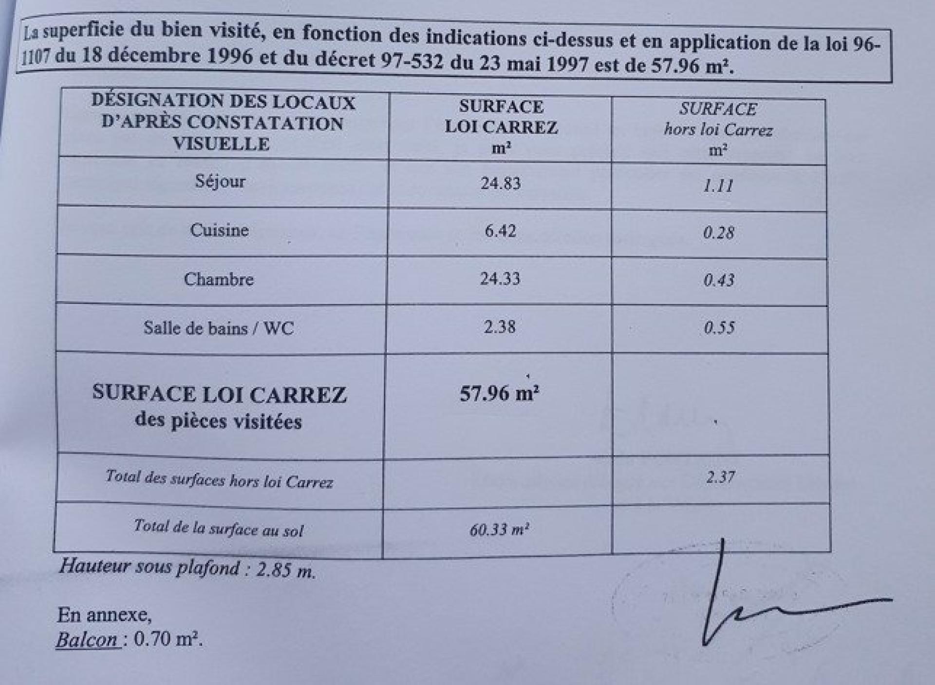 Description de cet appartement à vendre de 2 pièces et 60 m²