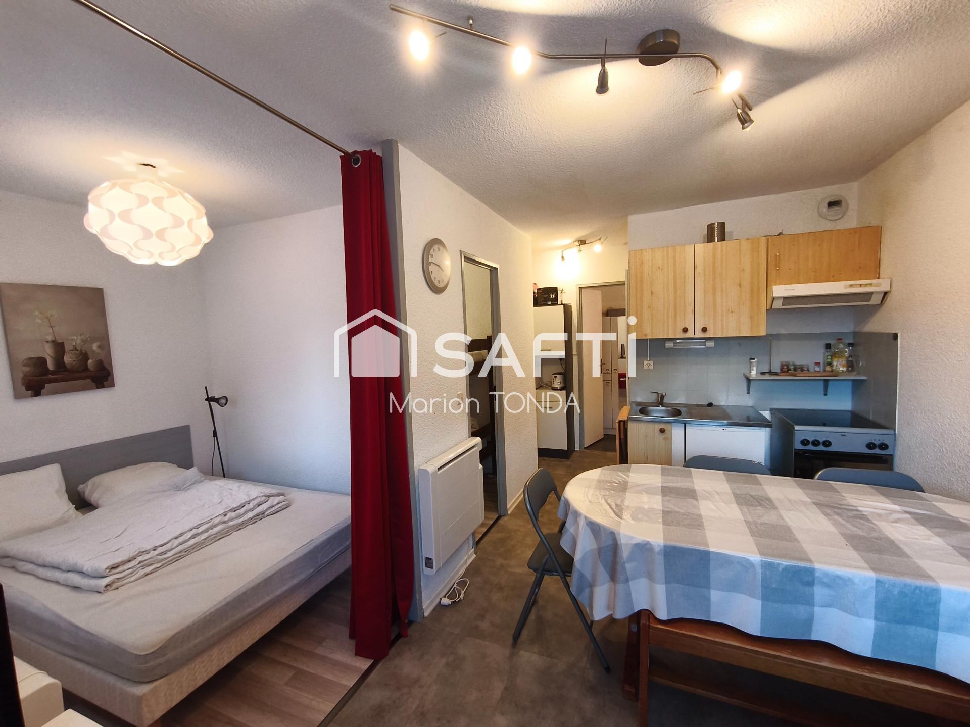 Ce bien d'environ 32 m², comprend un sas d'entrée, un espace de stockage, une salle d'eau avec baignoire et un WC indépendant. Ainsi qu'une pièce de vie fonctionnel avec cuisine, salle à manger / salon, une chambre avec lit double et un coin montagne. De plus, un local à ski est inclus à l'entrée de la résidence offrant un espace pratique. Cet appartement représente une opportunité pour une résidence secondaire ou un investissement locatif.