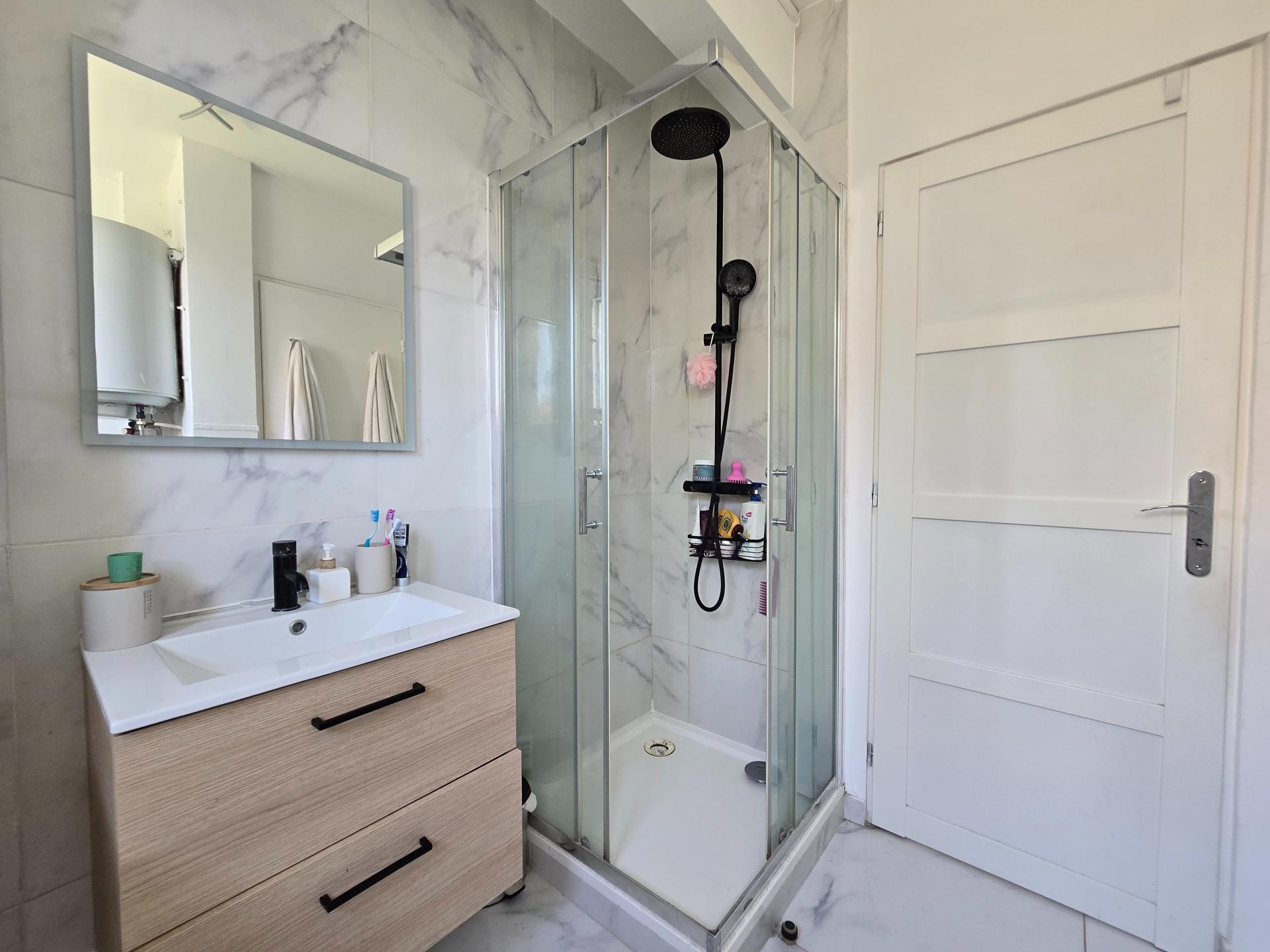Vous trouverez également une salle d’eau avec toilettes ainsi que des rangements.