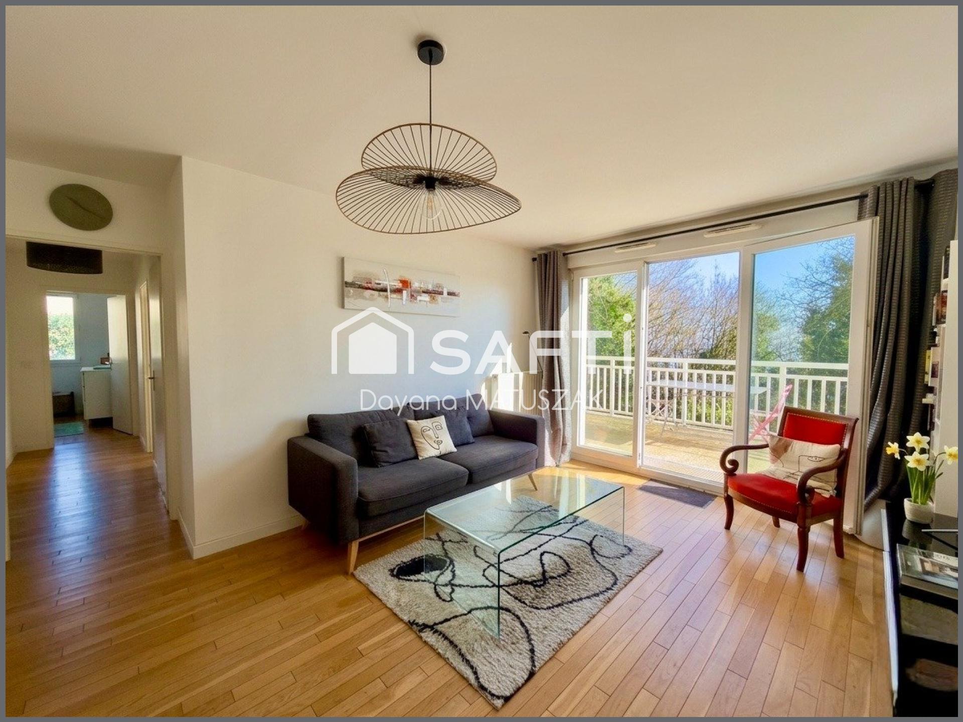 Ce T4 en rez-de-jardin surélevé de 82,5 m² (loi Carrez) offre un espace pensé pour le confort :