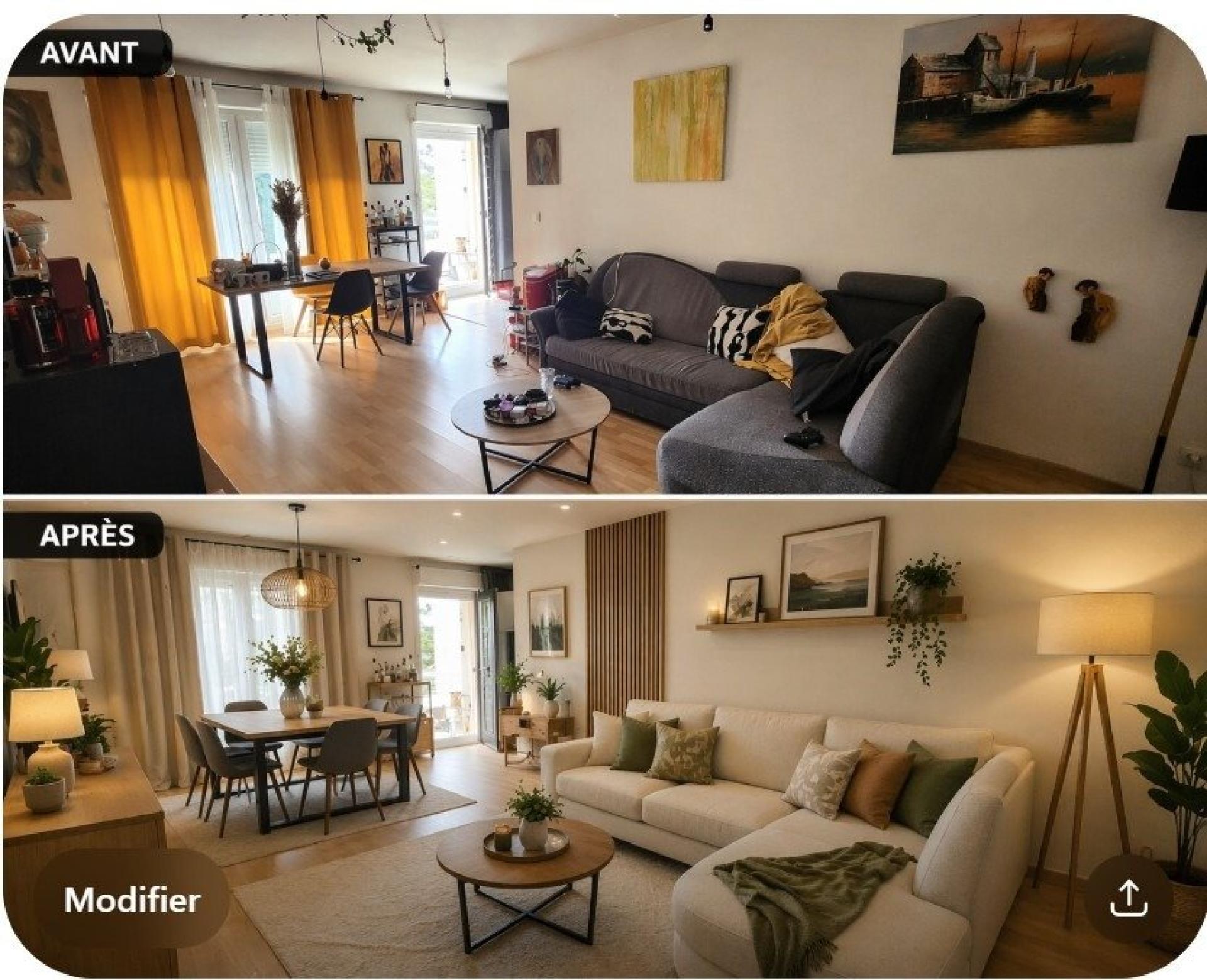 Un spacieux espace de vie de 33 m² comprenant un salon, une salle à manger ainsi qu'une cuisine équipée et ouverte.