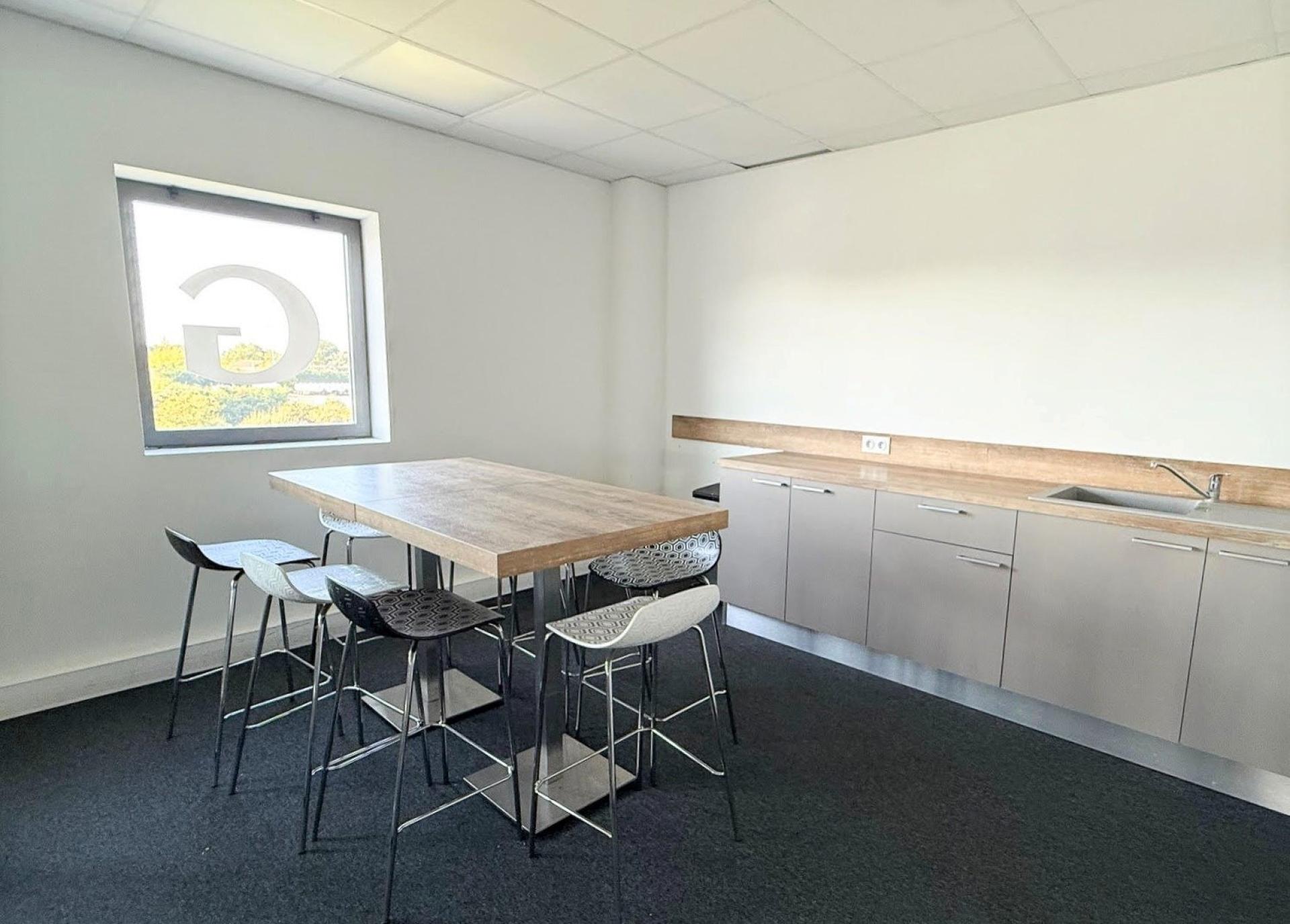 bureaux cloisonnés, une salle de réunion, blocs sanitaires avec douche, fibre optique, ascenseur PMR et 3 places de parking privatives en ex
