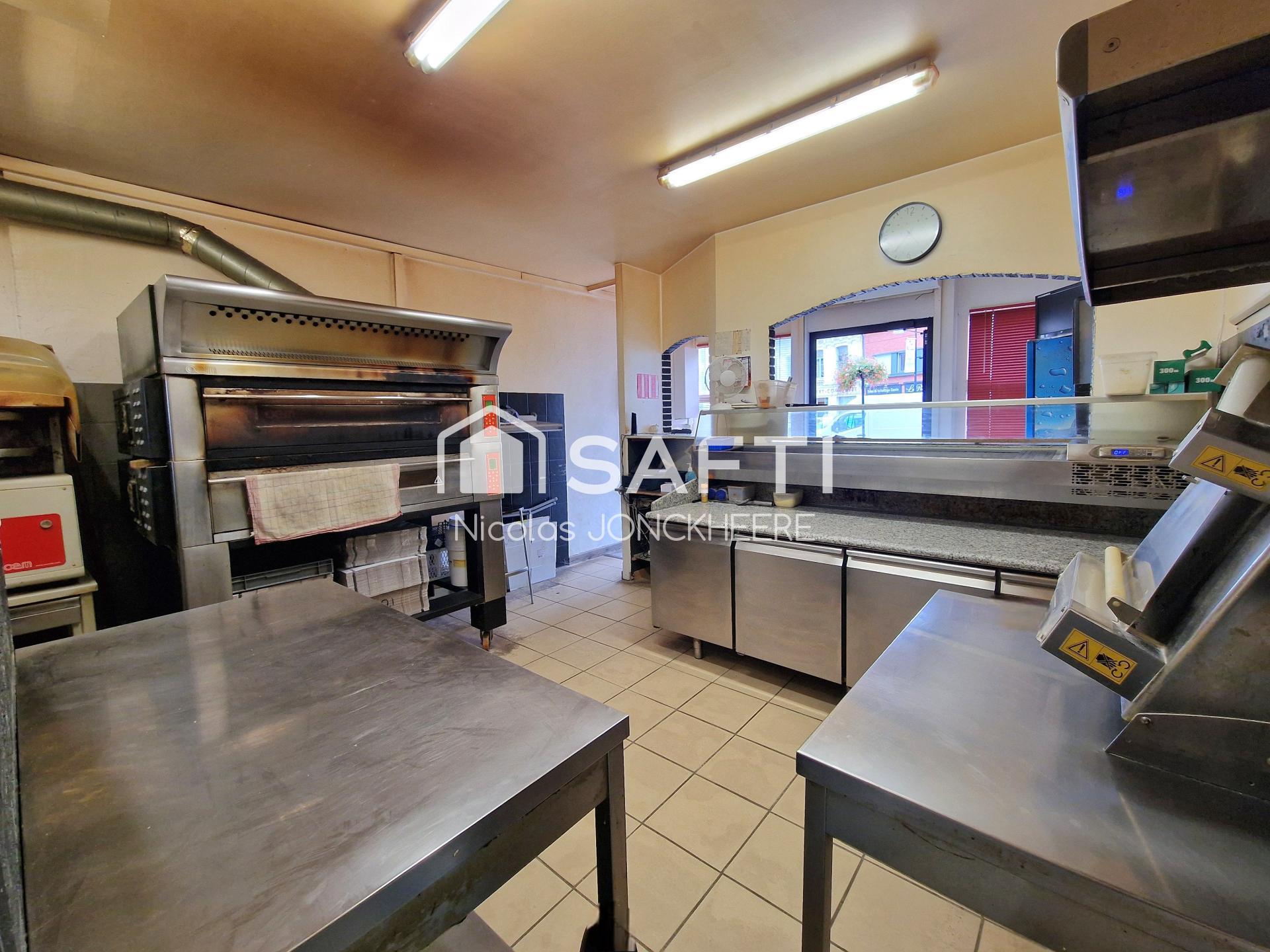 La pizzeria propose une surface commerciale de 35m² dans laquelle nous allons retrouver un espace stockage et un espace préparation/ cuisson. Bien entendu, nous avons un espace supplémentaire permettant l'accueil clientèle.