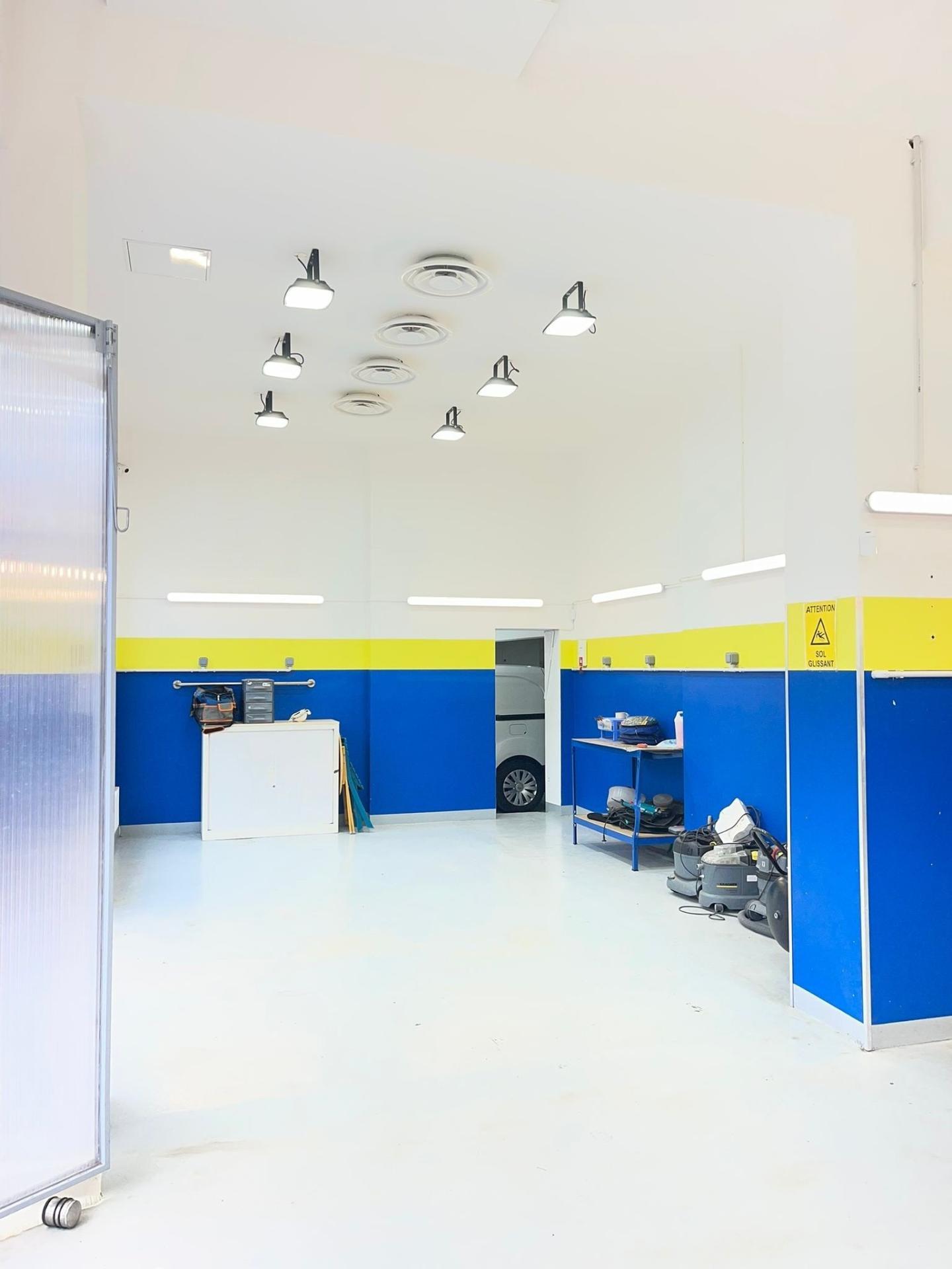 Le local de 150 m² est d'une qualité exceptionnelle, refait complètement à neuf, bénéficie d'un parking extérieurs couvert et sécurisé (3 véhicules), de 3 emplacements intérieurs très hauts de plafonds pouvant accueillir des camionnettes/ambulances/etc.), d'une salle d'accueil et/ou de repos, d'un bureau, d'un espace de stockage et de 2 toilettes.