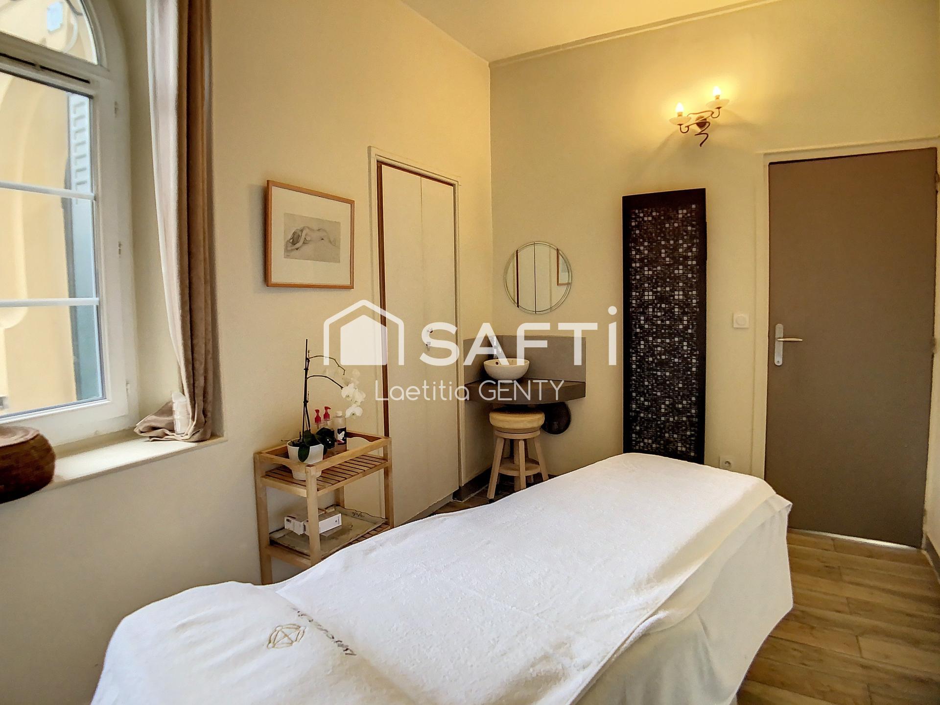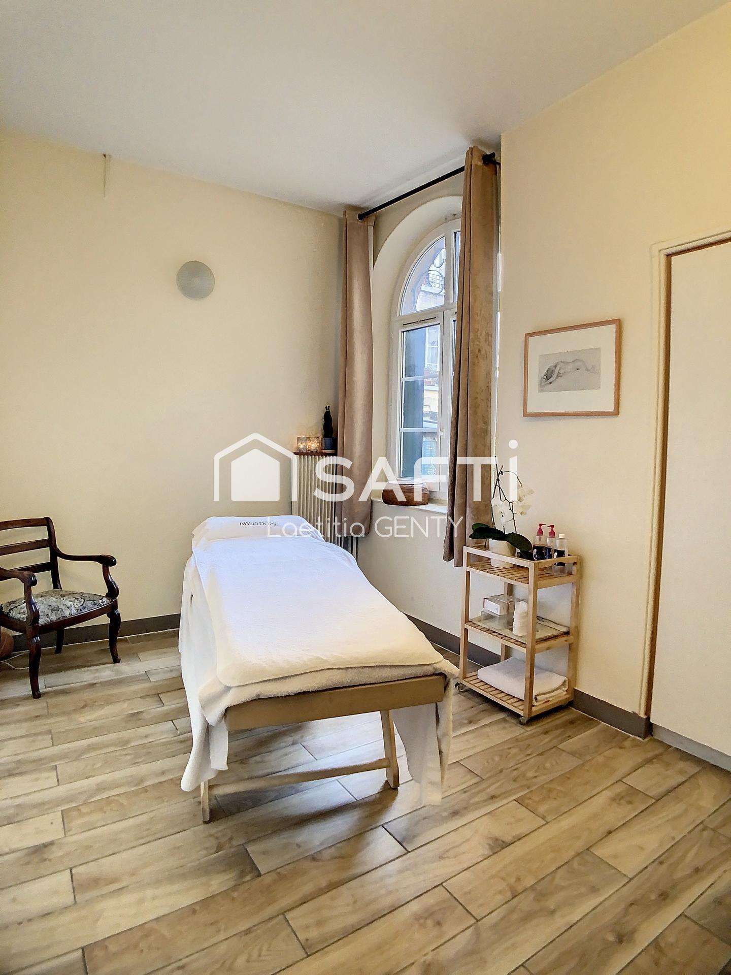 Surface de 65 M² environ avec BEL ESPACE D'ACCUEIL ET D'ATTENTE, 3 CABINES chacune ayant fenêtre sur cour ou rue, l'une avec point d'eau, DOUCHE, WC et cuisine.