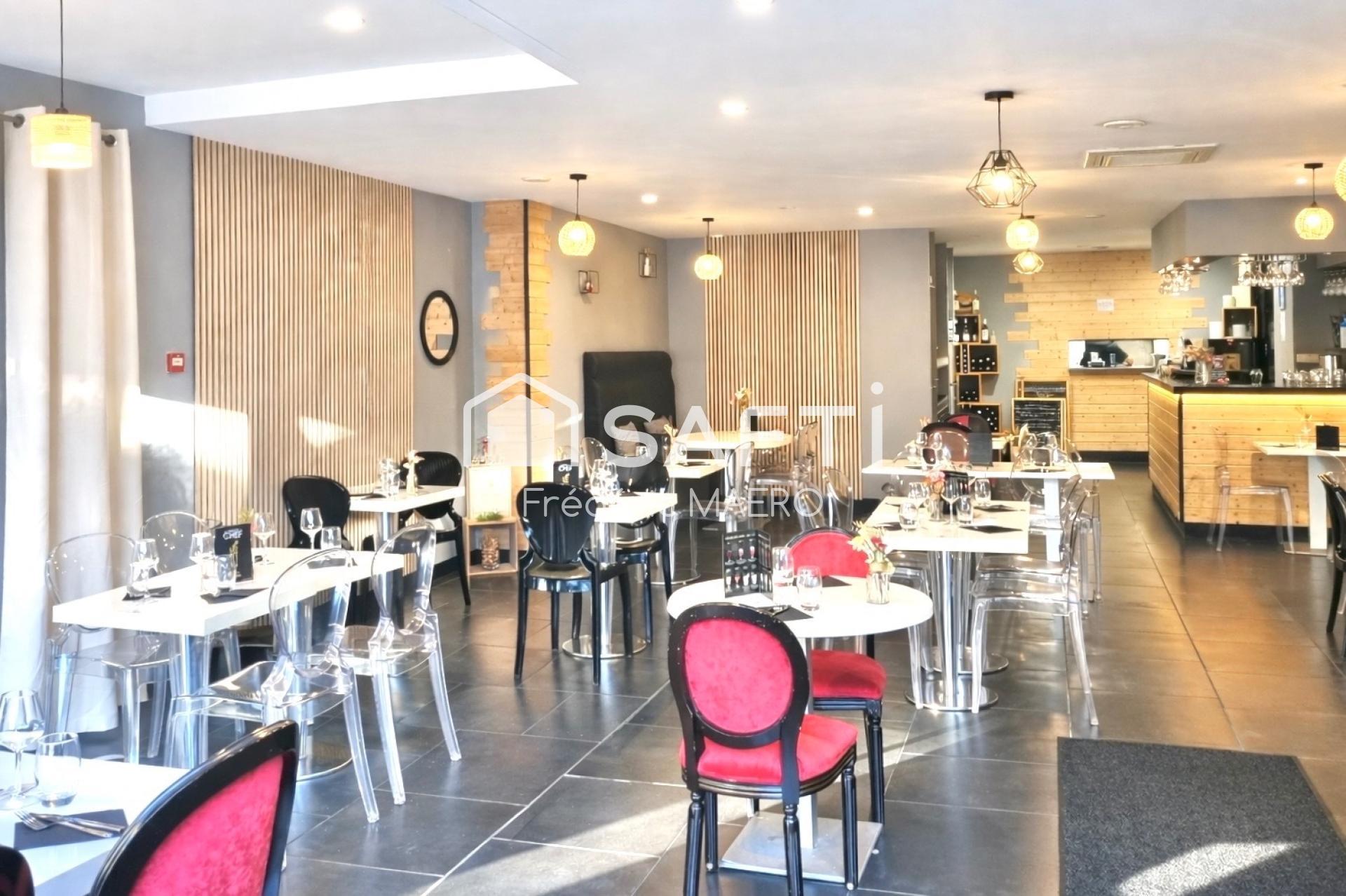 Entièrement refaite, la salle du restaurant peut accueillir environ 50 couverts, avec une optimisation possible jusqu’à 60 couverts. Elle s’ouvre sur une terrasse fermée et chauffée offrant entre 20 et 30 couverts supplémentaires.
