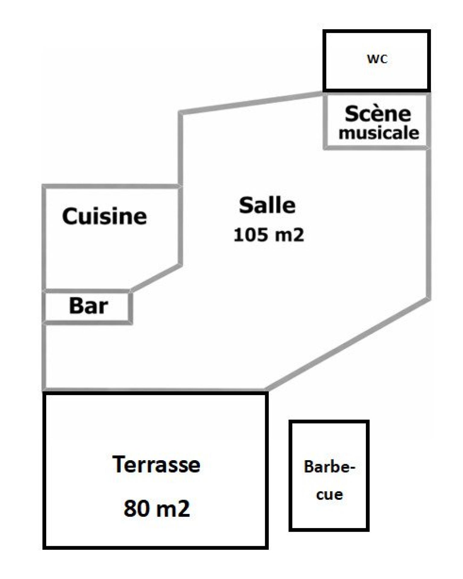 + Restaurant avec scène musicale et licence IV présentant une grande capacité d'accueil (selon les normes incendie) : 100 personnes en salle (105 m2), 80 personnes en terrasse (85 m2).
