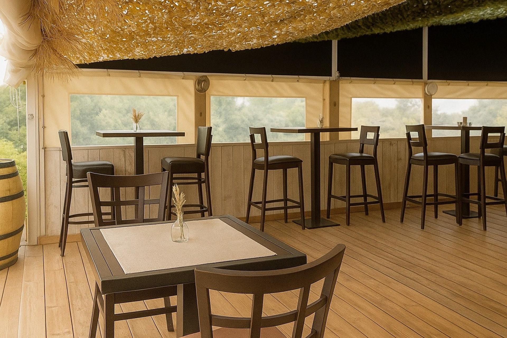 - Terrasse extérieure couverte de 45 m² capacité 40 à 50 couverts(possibilité de fermer avec un toit bâché)