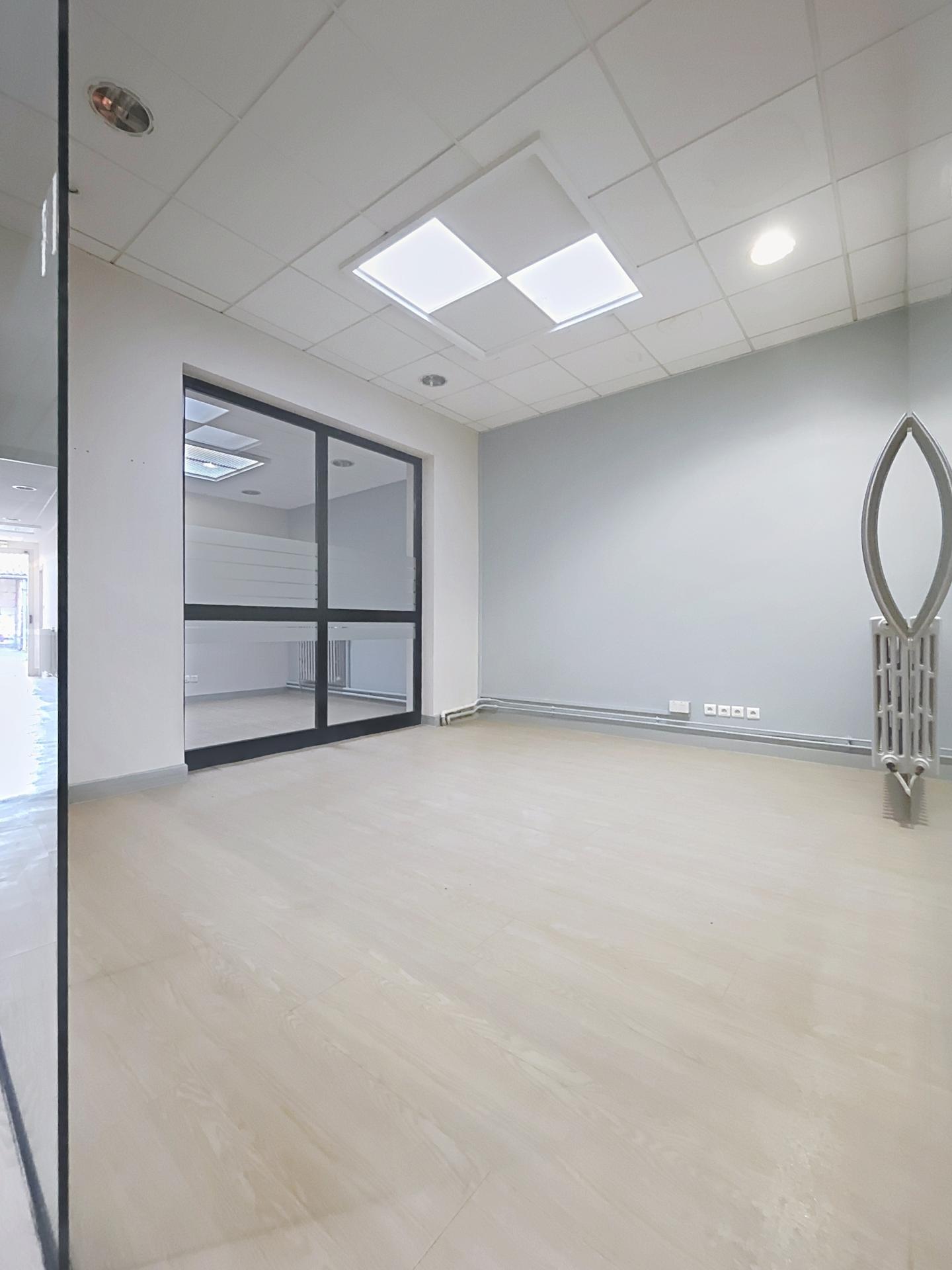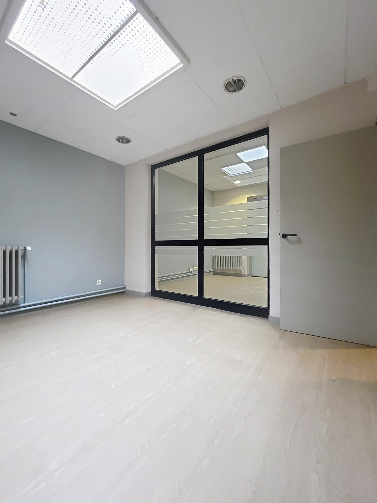 Le rez de chaussée d'environ 150m2 est divisé en 7 box vitrée. De nombreuses possibilités d'aménagement s'offre à vous. Coin WC et point d'eau sont déjà à disposition. Un double accès sécurisé avec sas à l'entrée et un accès à l'arrière du bien donnant sur une cour fermée.