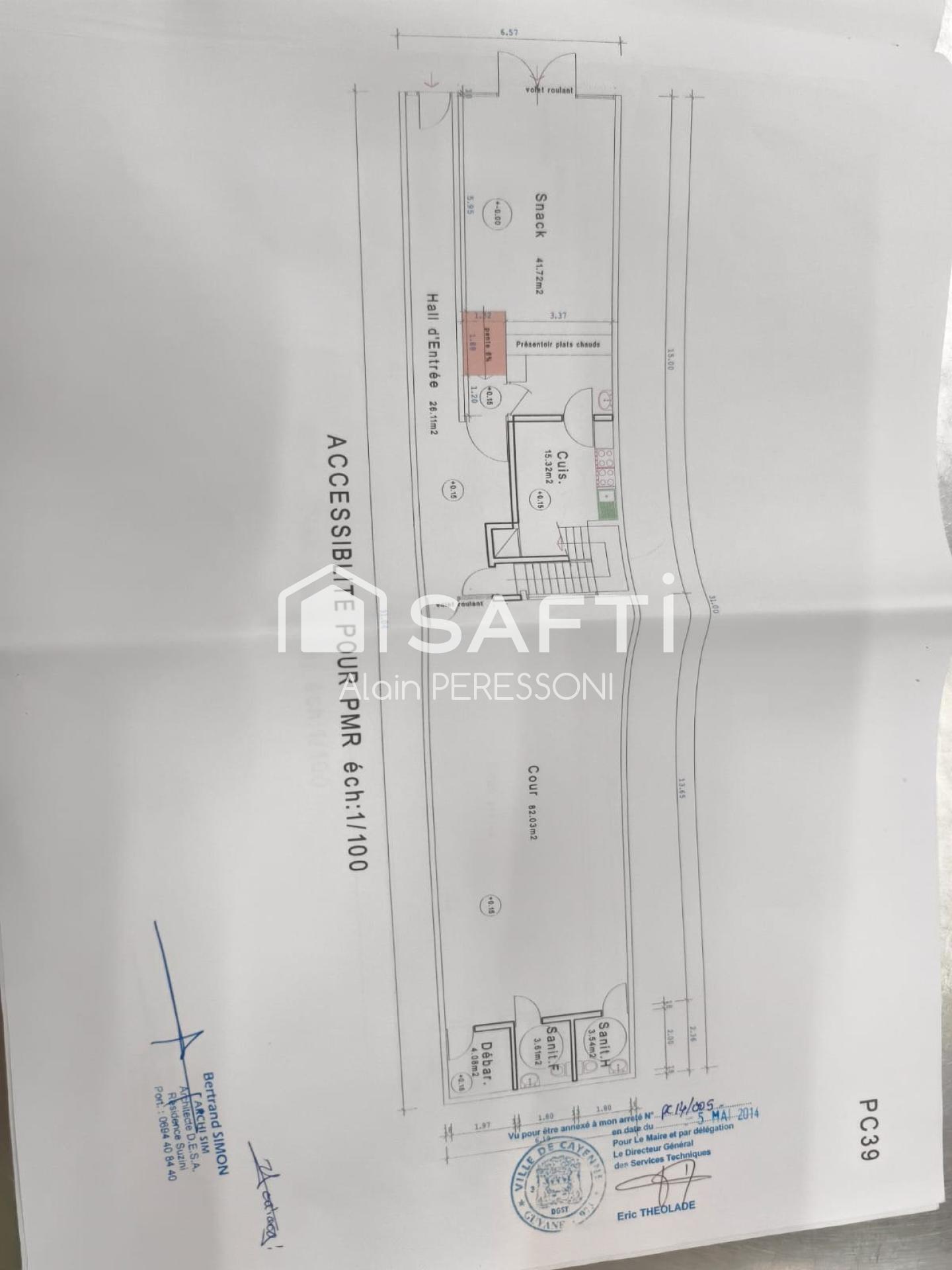 A Cayenne, en rue commerçante très fréquentée, SAFTI vous propose un immeuble en R + 2 composé au RDC de 60 m2 de surface exploitable, accueillant habituellement un espace de restauration avec une cours équipée sanitaires, puis deux niveaux avec balcons terrasses sur 70m2 chacun, soit un total de 200m2 + locaux techniques. Le restaurant et le second étage (T4) ont été réhabilités en 2014, le premier (T3) est à rafraichir. Rapport locatif possible entre 2400€ et 3000€ selon la destination donnée au restaurant.