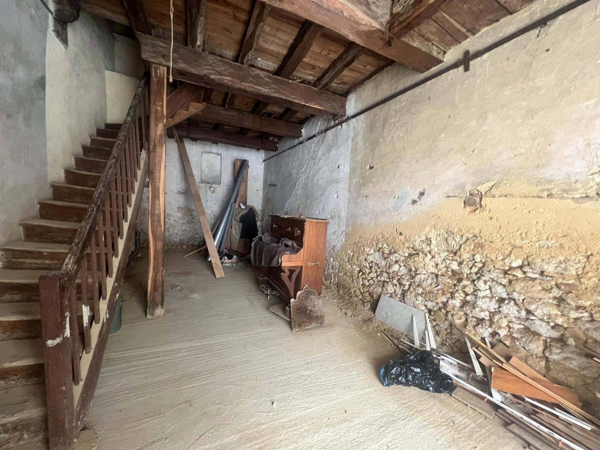 • Premier étage : une pièce de 22m², parfaite pour une grande chambre, une seconde pièce de 8m², envisageable en salle de bain, une pièce traversante desservant les combles