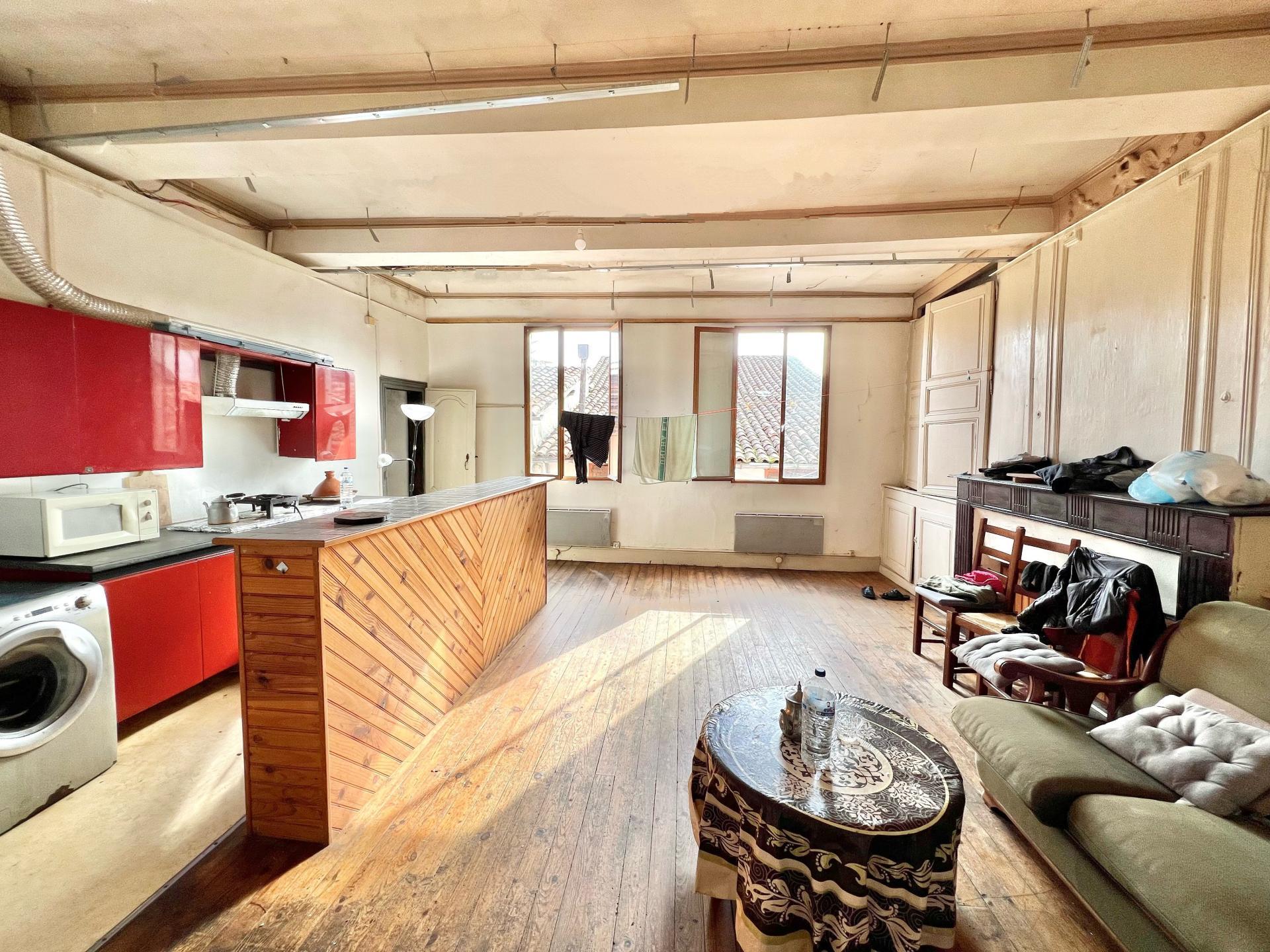 Au premier étage , Appartement de 60 m2 à rénover de type T3 loué 450 €, et Plateau de 100 m2 brut pouvant accueillir le 5ème logement .