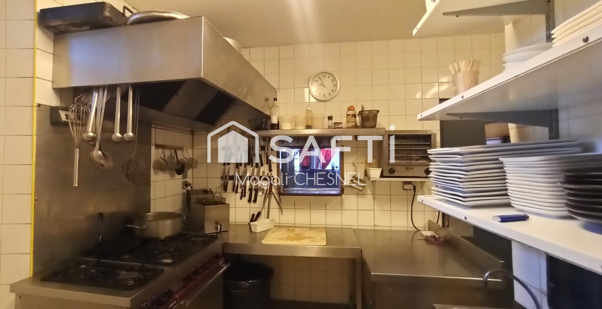 Les murs de la pizzeria/grill/saladerie comprennent une salle de 55 couverts sur deux niveaux, une cuisine aménagée et équipée, deux réserves, un wc, une terrasse de 10 m² et une autre de 30 m² ombragée et au calme.