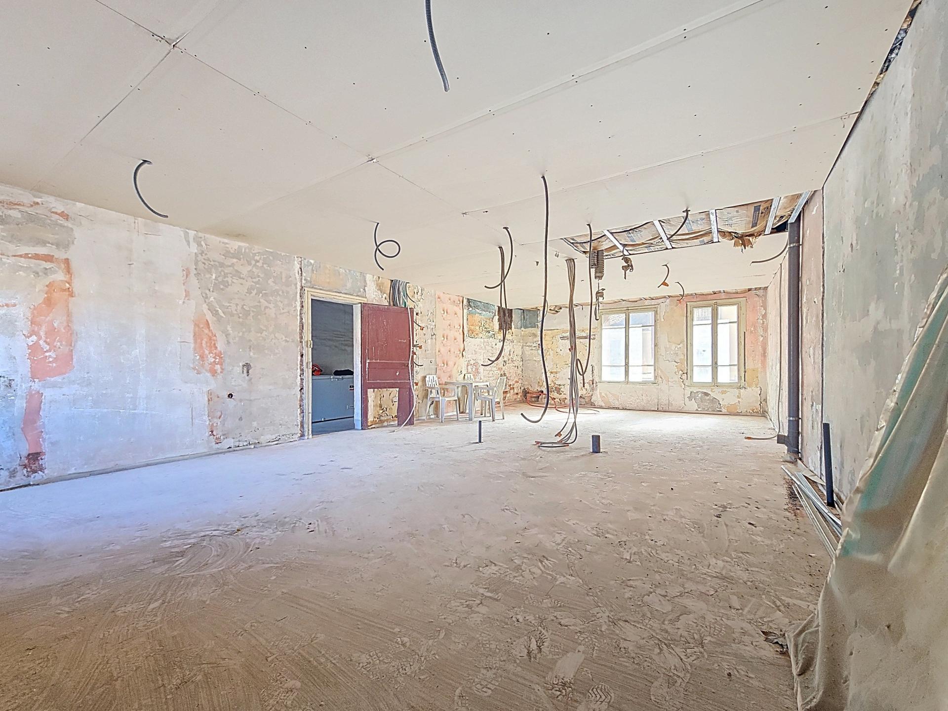De nombreux travaux préparatoires ont déjà été réalisés, permettant un gain de temps considérable : le placo est en grande partie posé, les chapes au sol sont réalisées, les gaines et câbles électriques sont entièrement tirés, la colonne montante est en place et deux compteurs électriques sont déjà installés avec possibilité d’en créer un troisième.