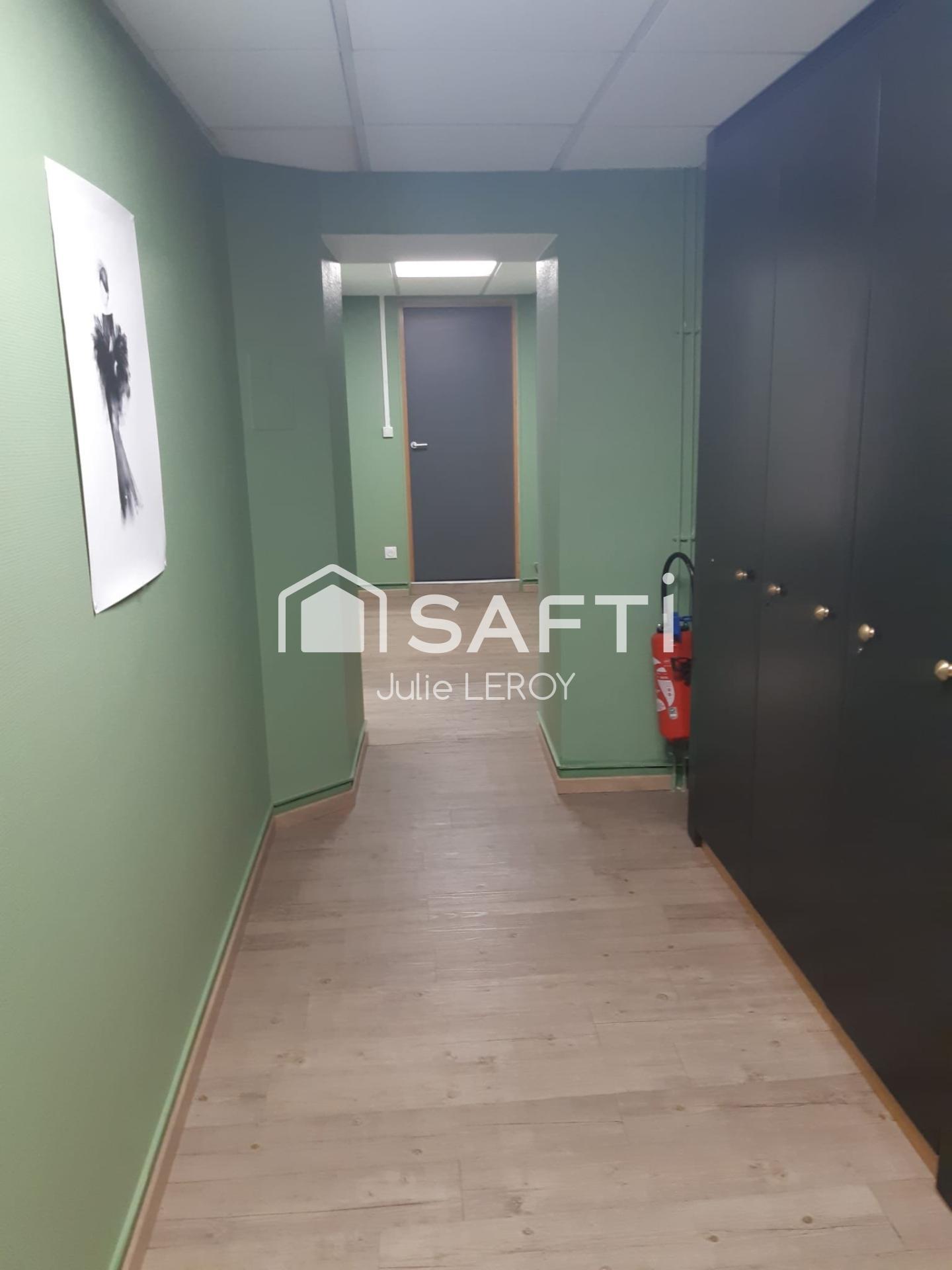 - d'un local commercial de 79m² avec une grande vitrine, 3 pièces, une cave / DPE = B / Chauffage = Pompe à chaleur.