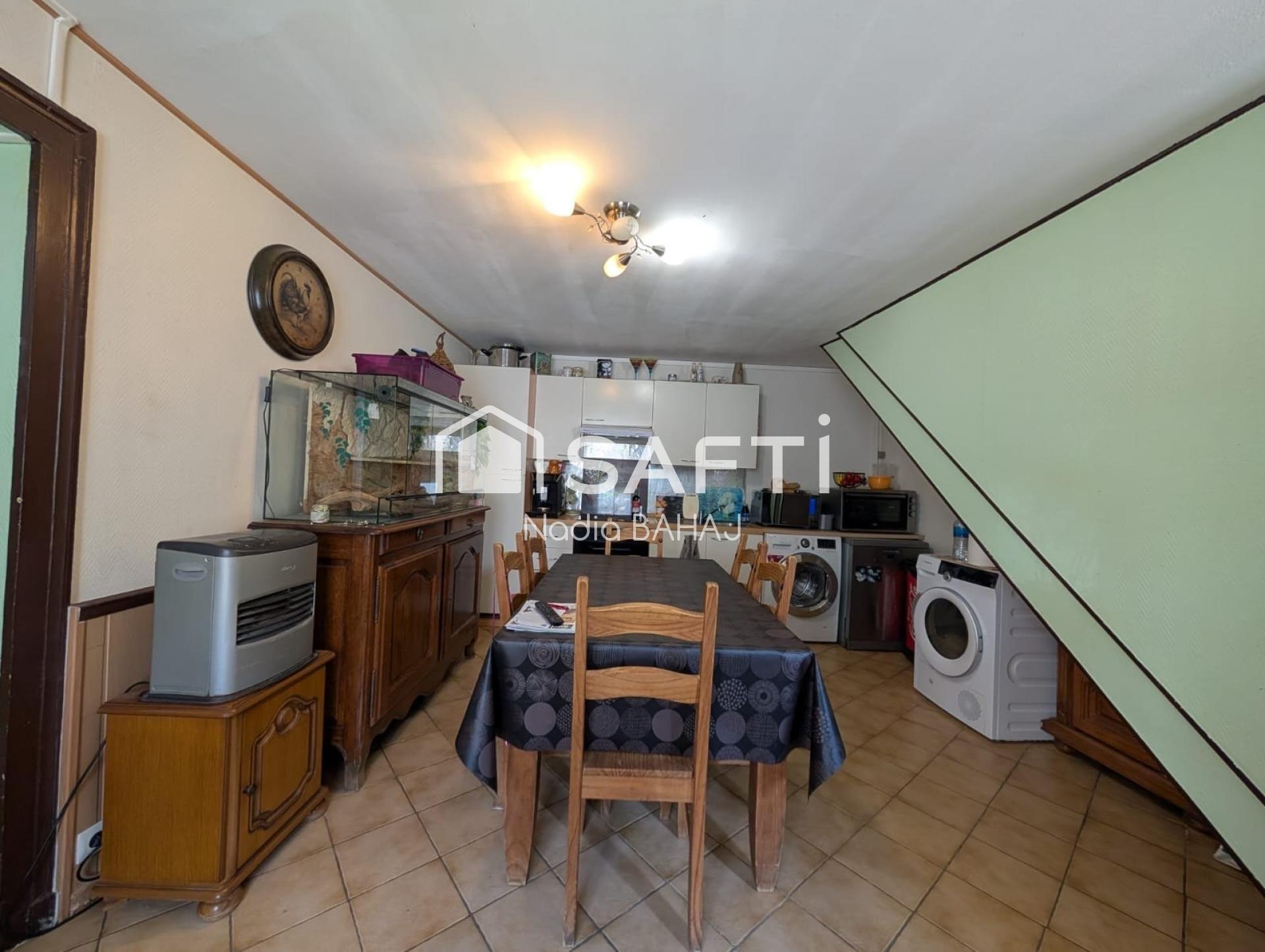 Une cuisine, une pièce au rez de chaussée.