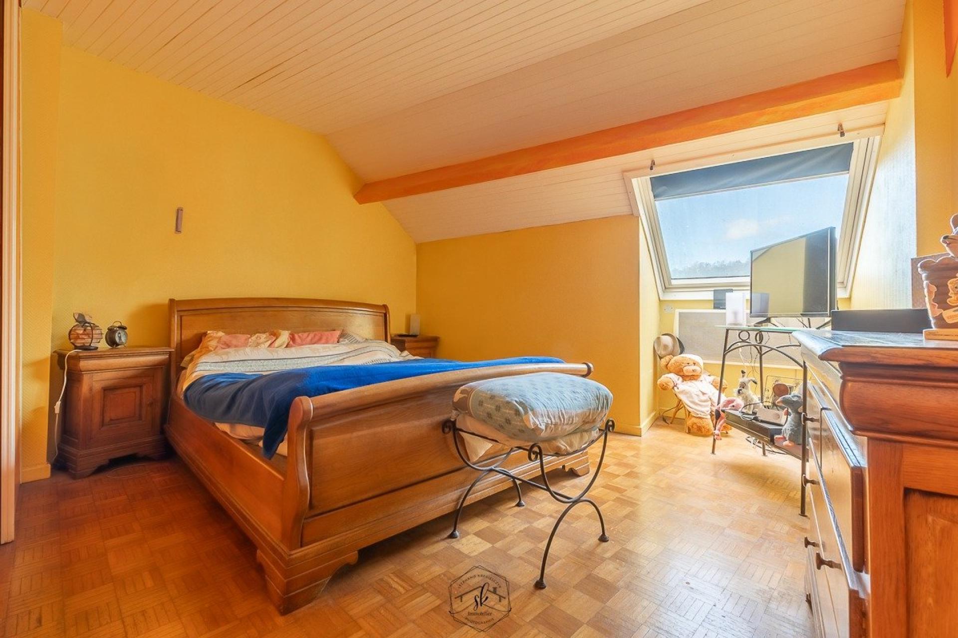 Un appartement spacieux offrant 3 chambres, un salon, une salle à manger, une buanderie, un bureau, une salle de bain, deux WC ainsi que des combles aménageables. Il bénéficie de fenêtres en double vitrage et de Velux solaires récents.