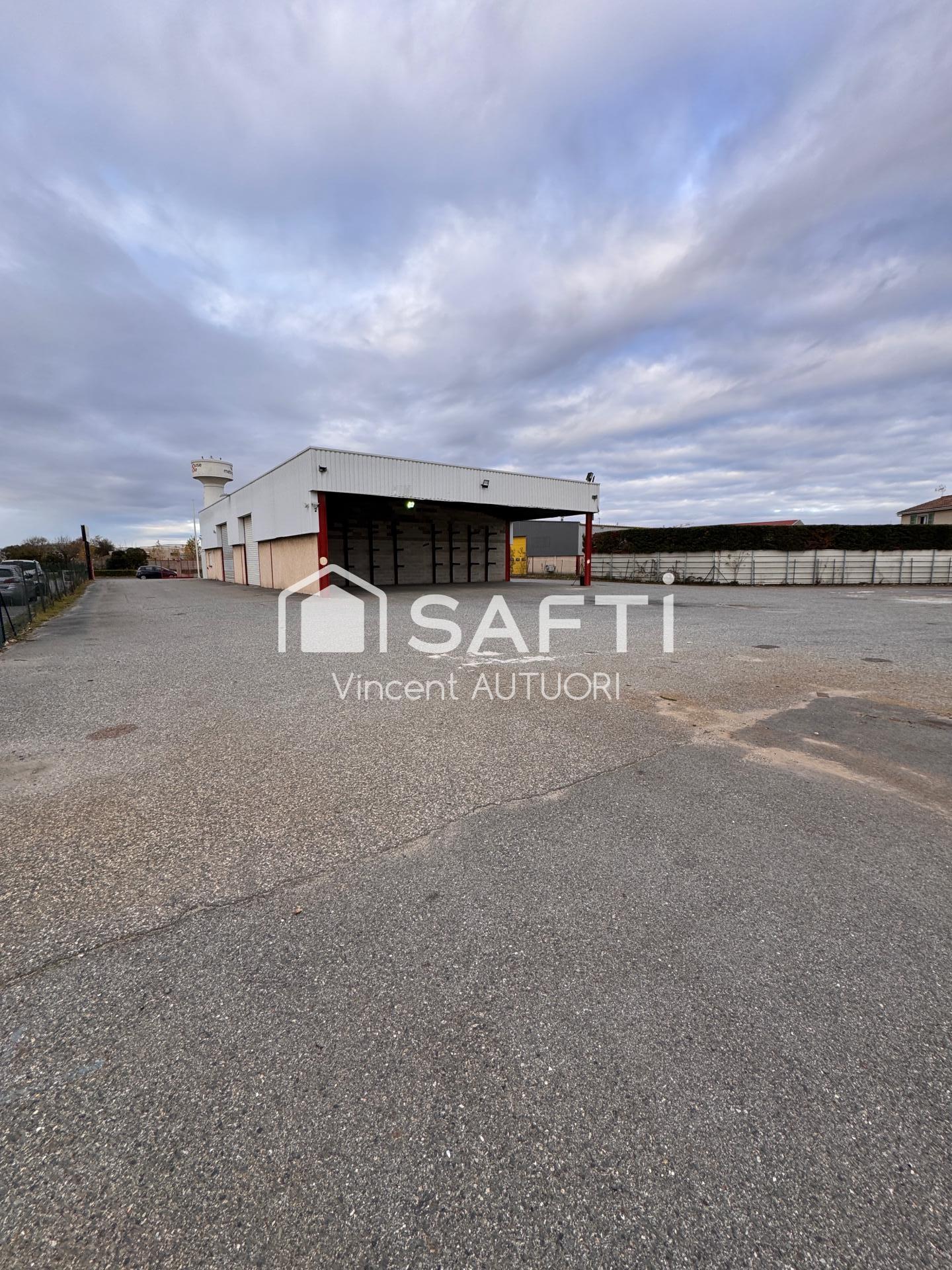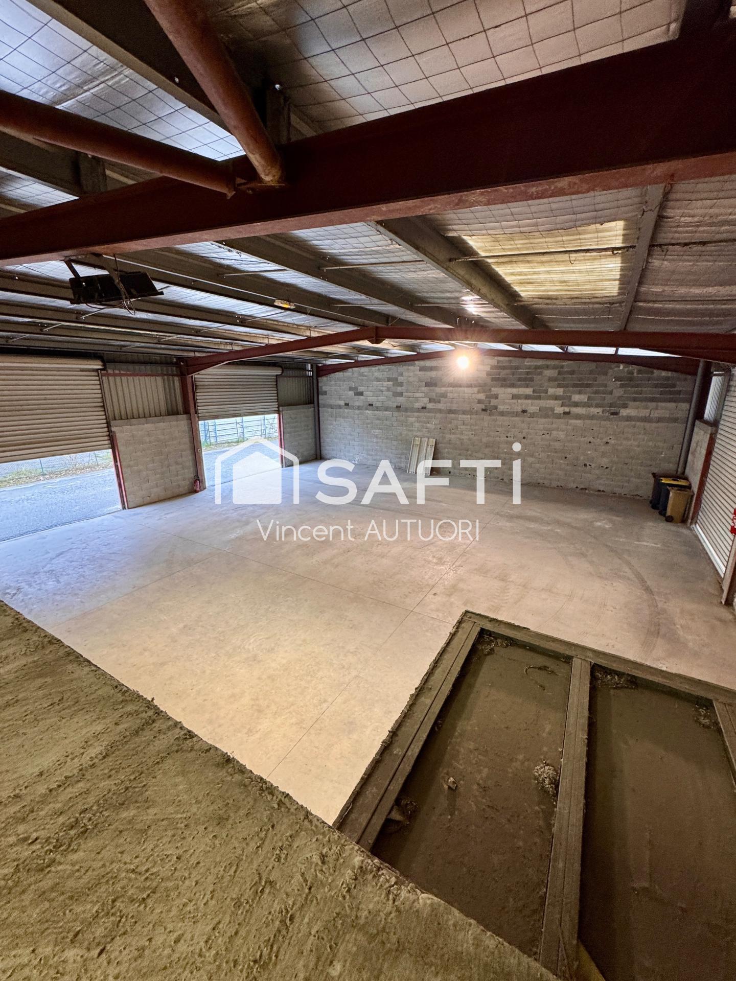 Local commercial de 450m2 avec bureau + atelier avec 4 portes éléctriques sur un grand parc clôt à l'abri des regards de 3 047m2.