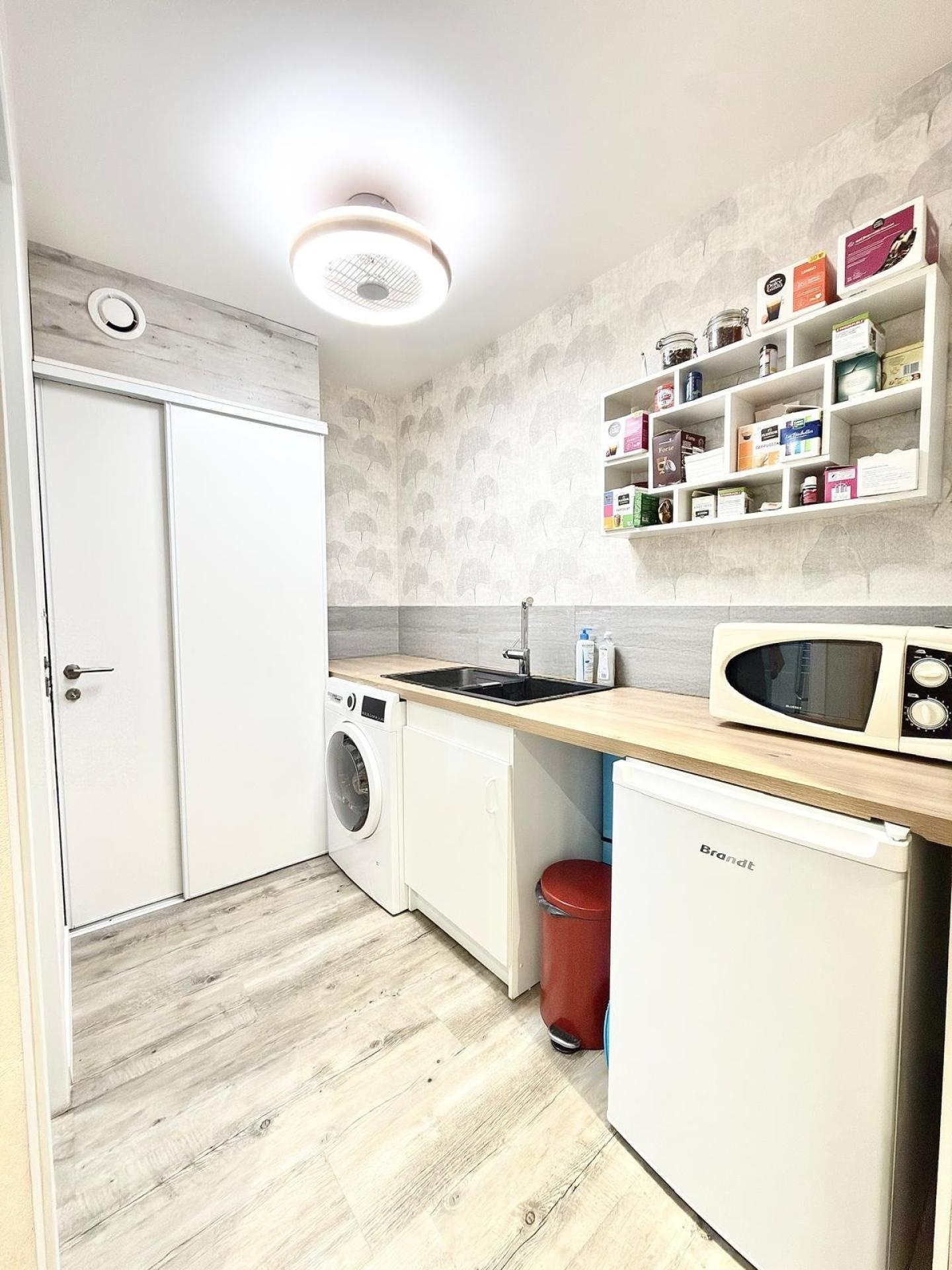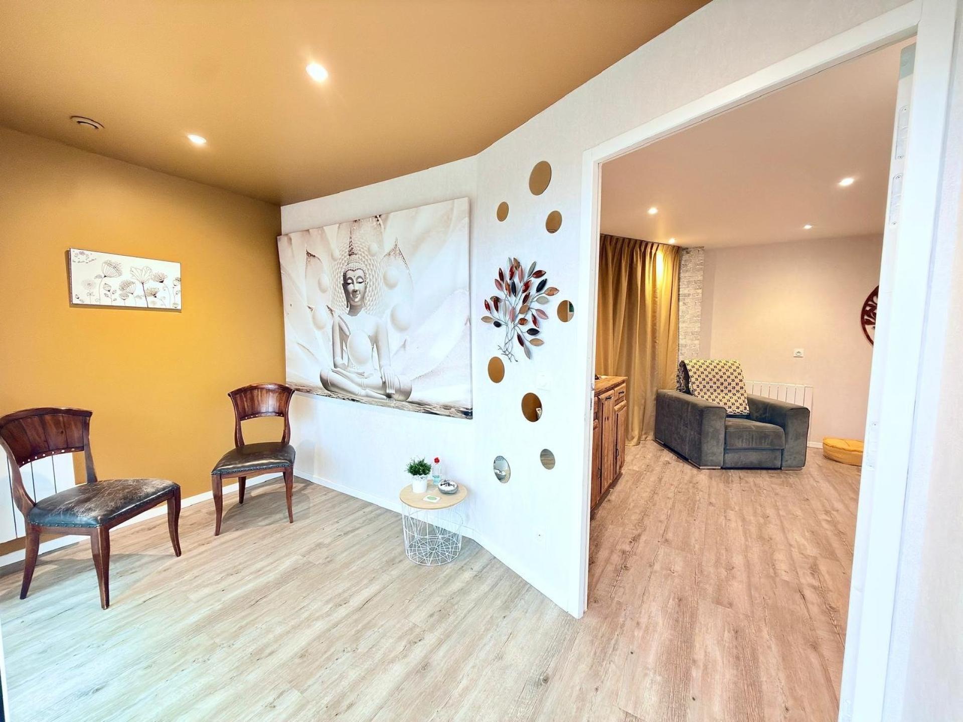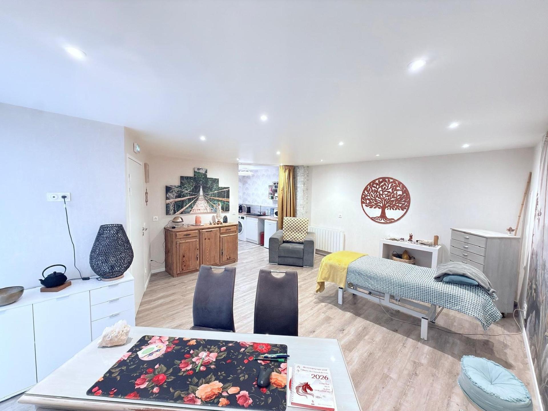 Il se compose d’une salle d’attente accueillante, d’un espace principal actuellement exploité en cabinet, d’une cuisine aménagée ainsi que d’une salle d’eau.