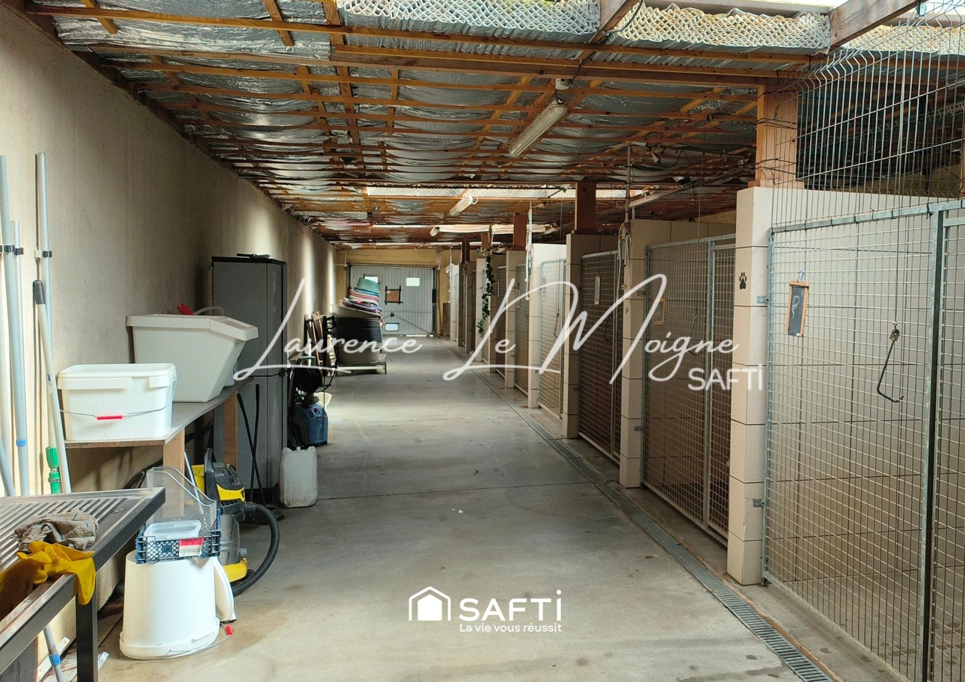 Ce bien offre un bel outil de travail avec un bureau, un espace de stockage,13 box avec cours privatives, 1 cour commune, une chatterie, 2 terrains de loisirs,1 salle de bain, et un espace toilettage en libre service.