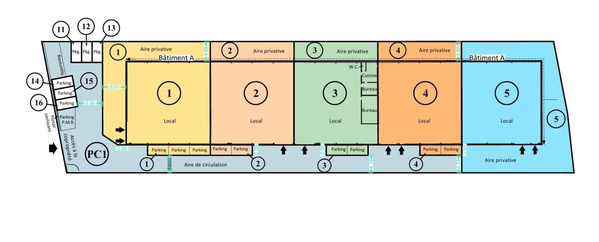 Il y a possibilité d'acquérir des cellules supplémentaires de 380 à 400 m² environ chacune.