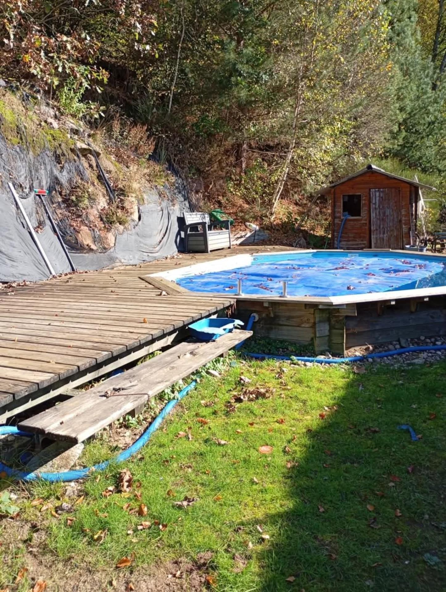 Sur un terrain de 650 m², cette propriété dispose d'une piscine semi-enterrée, idéale pour se rafraîchir lors des journées ensoleillées, ainsi que d'un grand garage double offrant un espace de stationnement pratique pour jusqu'à cinq véhicules.