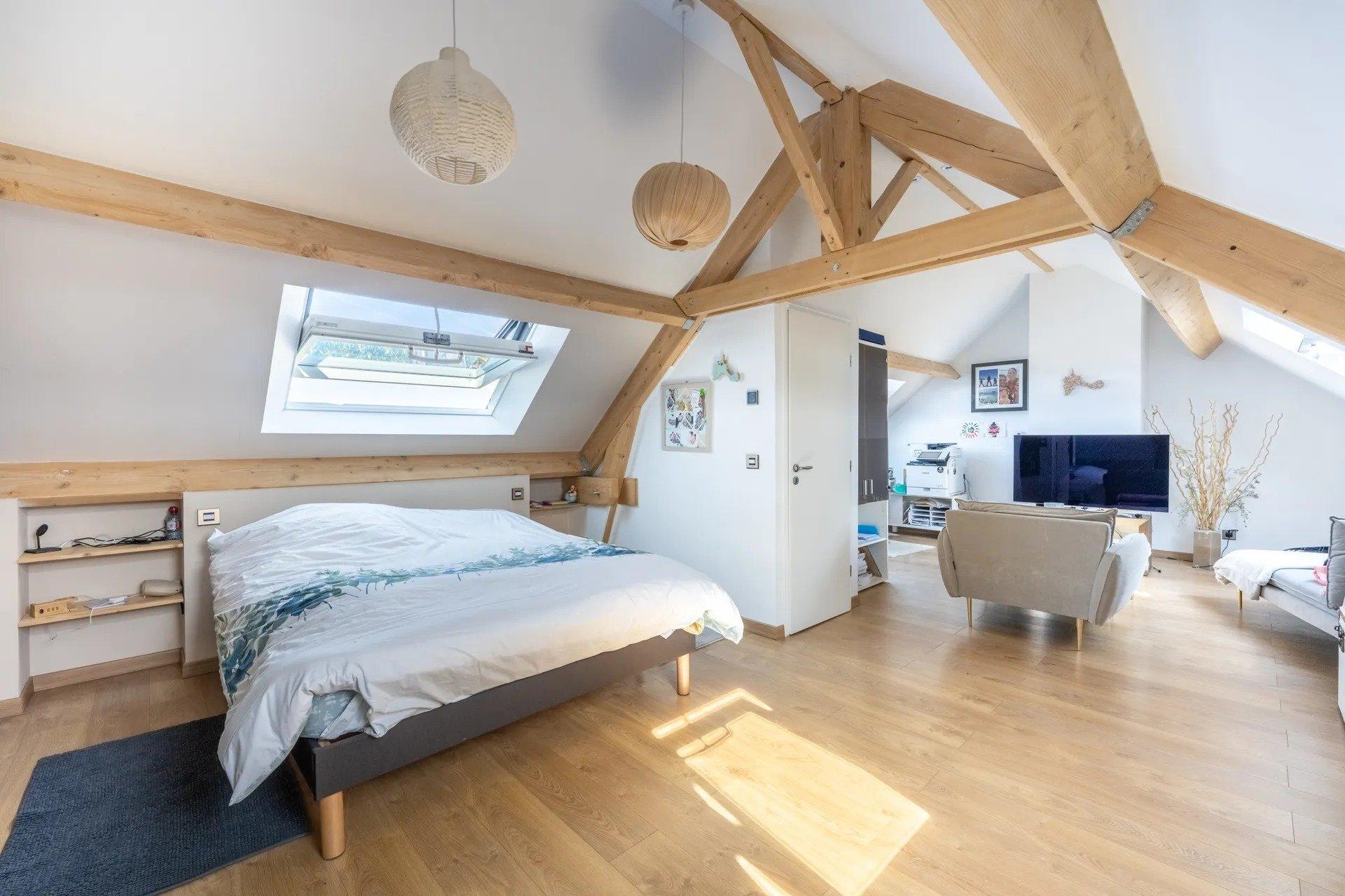 Le deuxième niveau aménagé en 2023 avec une surface de 40 m² vous offre une chambre avec salle de douche, et un espace salon