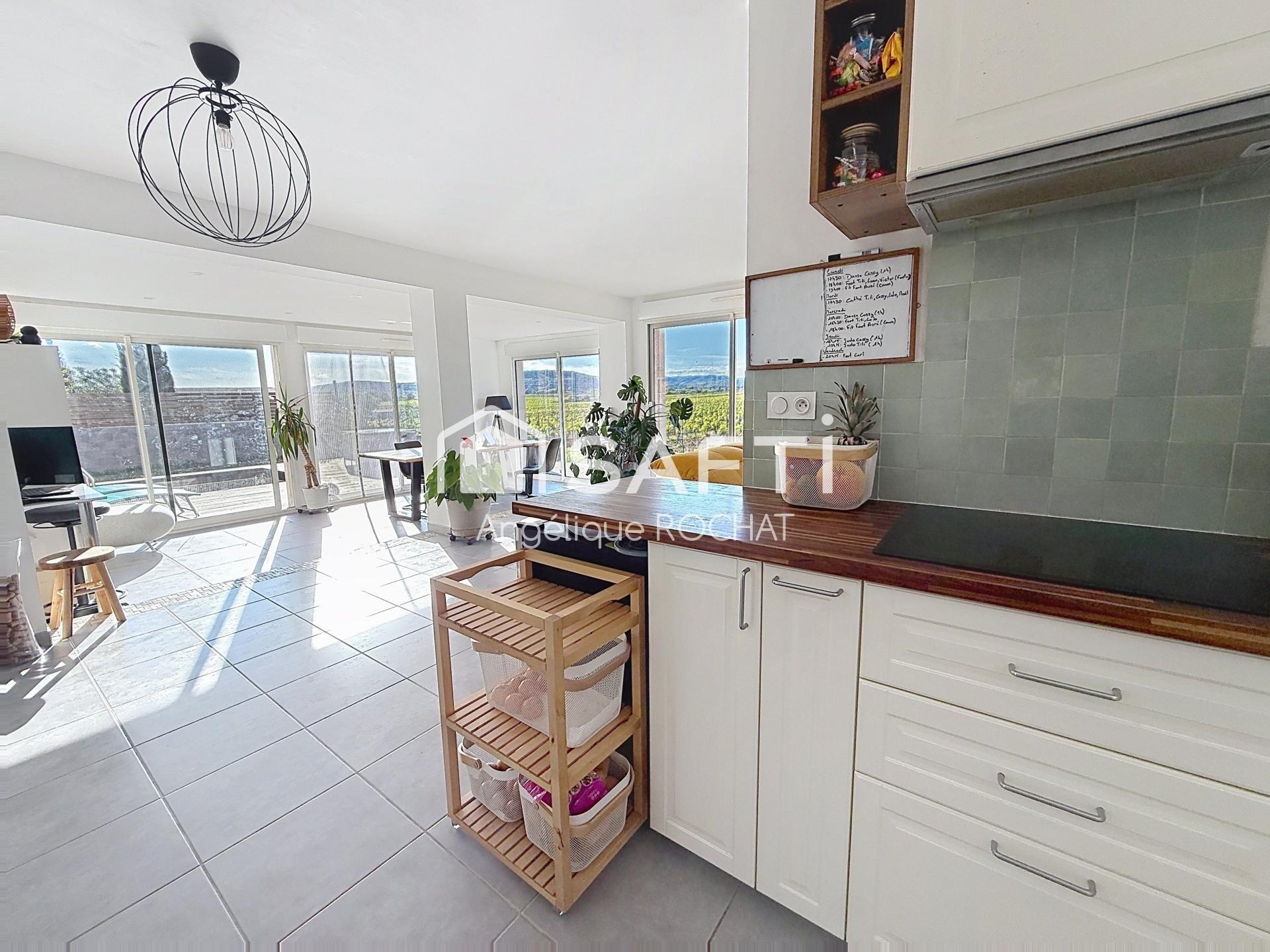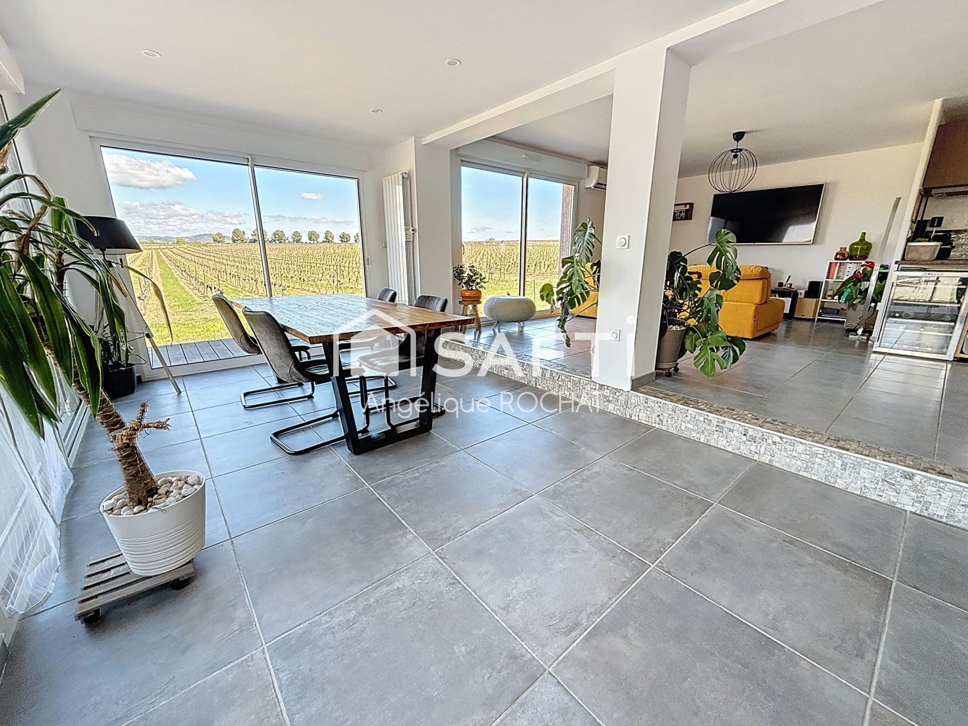 Villa moderne de plain-pied de 109 m² située à Adissan (34230) avec une magnifique vue sur les montagnes, dans un environnement calme et en pleine campagne, idéale pour les amoureux de la nature.