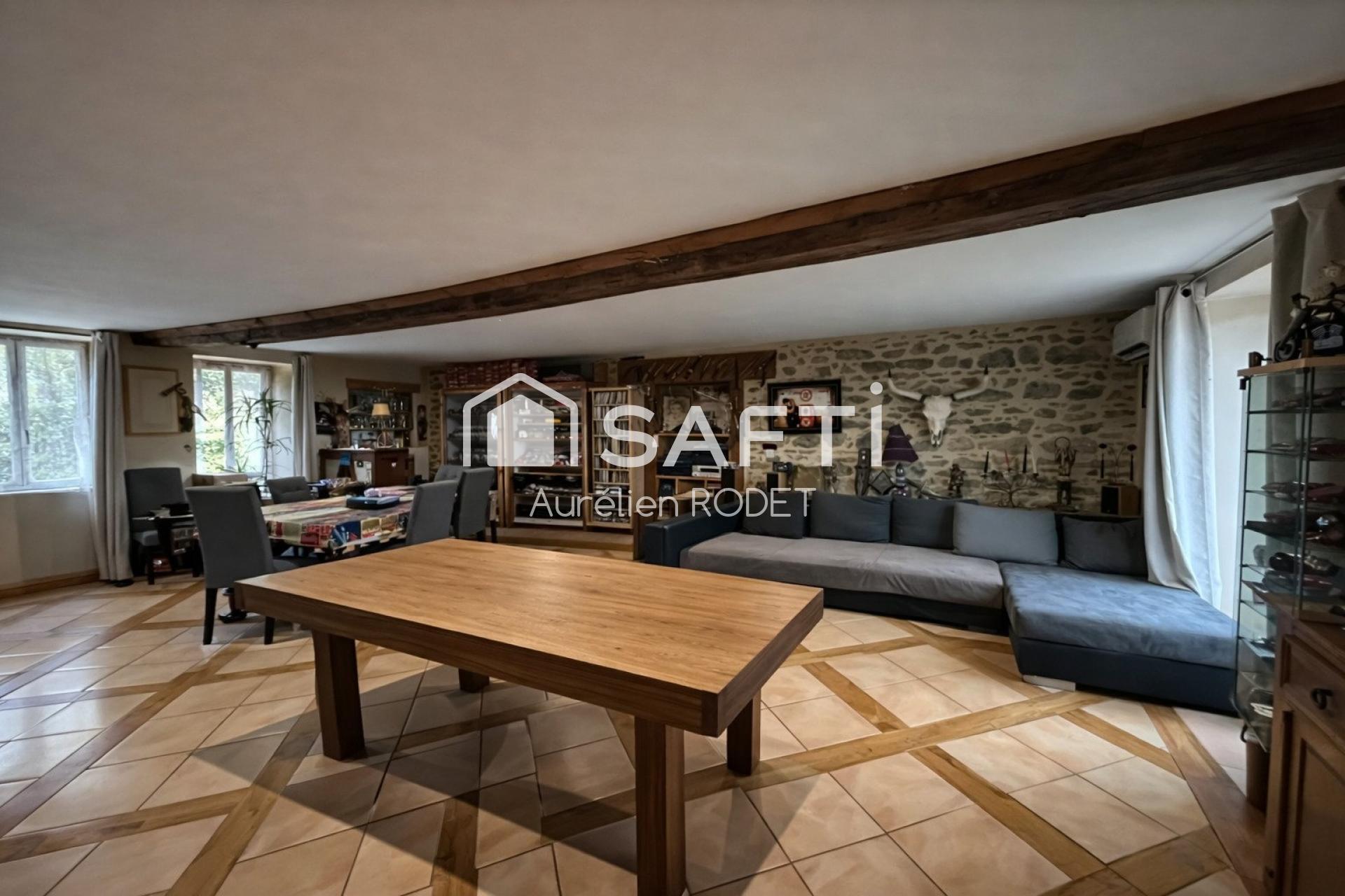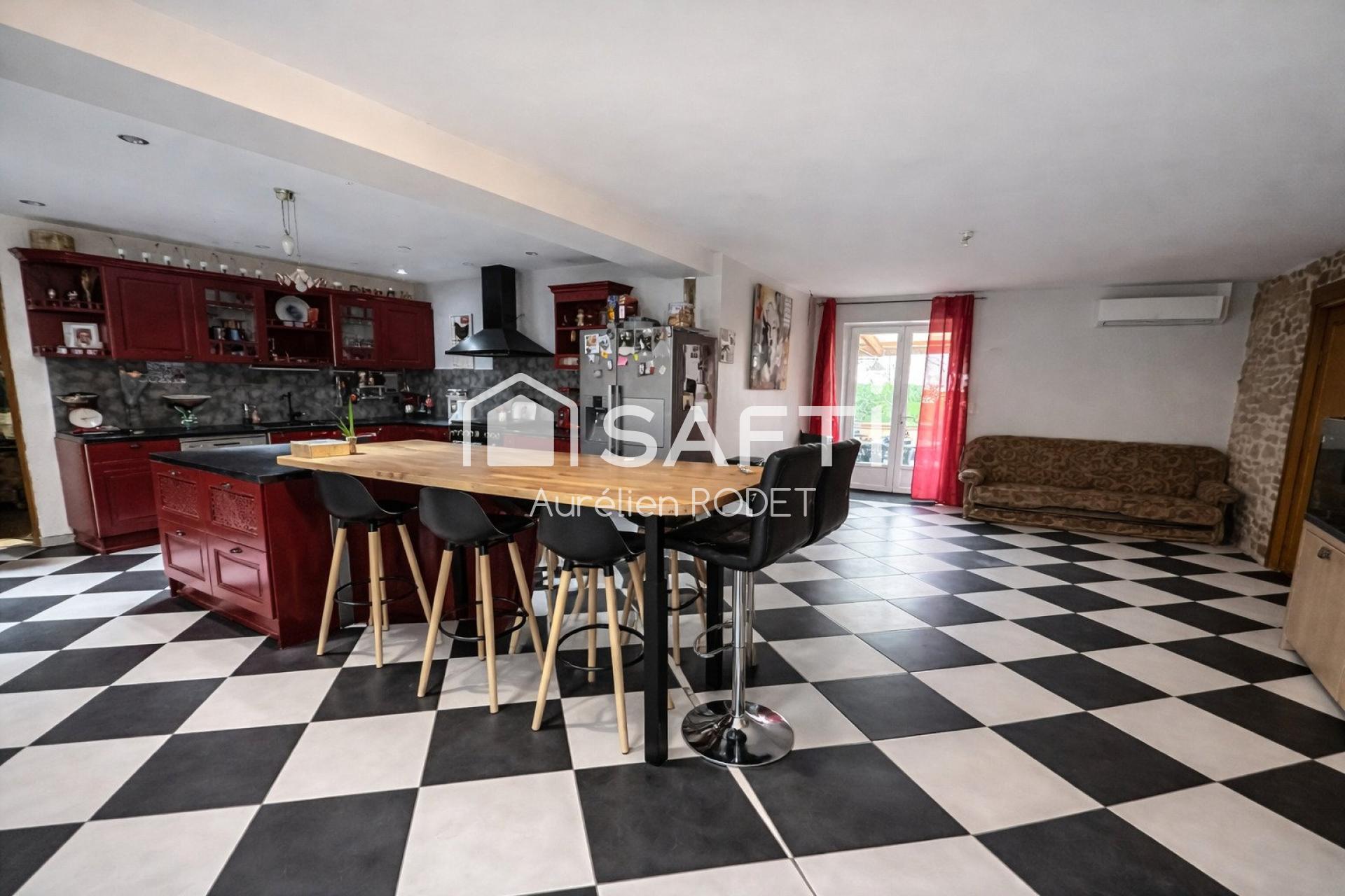 Cette maison spacieuse de 302 m² propose un agencement harmonieux avec ses 8 pièces, dont 7 chambres pour accueillir confortablement toute la famille. Les 4 salles de bain et 3 toilettes offrent praticité et intimité au quotidien. Équipée d'une pompe à chaleur, de panneaux solaires et de 2 poêles à bois, la résidence allie modernité et confort. Avec ses dépendances, grange aménageable, hangar et jardin, cette propriété offre un potentiel d'aménagement et d'évolution, parfait pour ceux en quête d'espace et de projets d'envergure, idéal notamment pour la création d'un gite atypique.